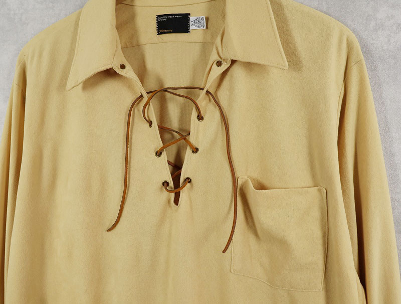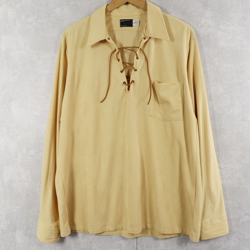 70's〜 JCPenney ベロア レースアップシャツ L [158661]