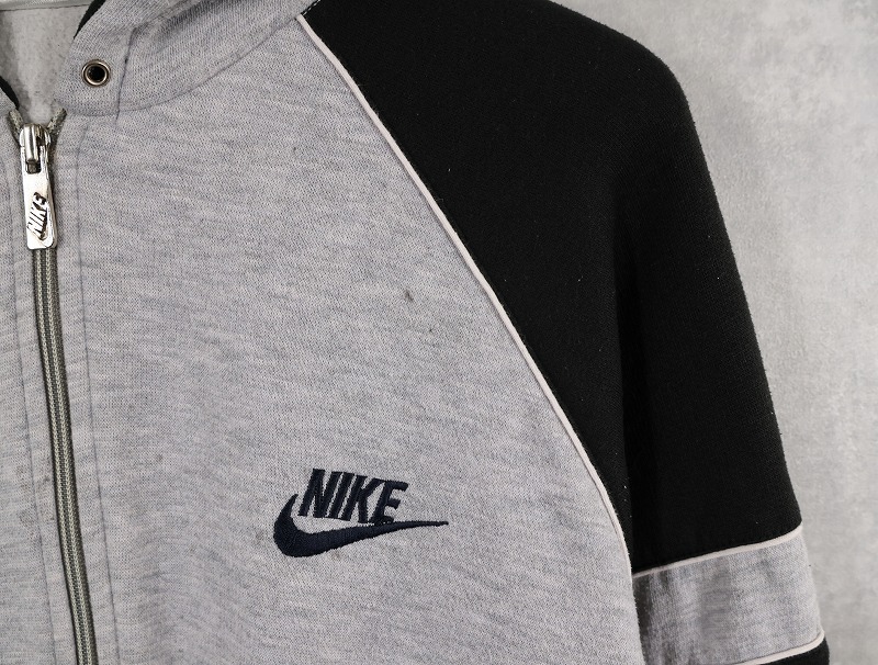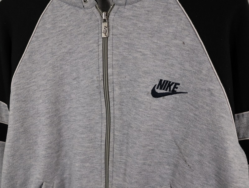 90's NIKE 銀タグ ロゴ刺繍 ラグランスウェットジップパーカー M [158666]