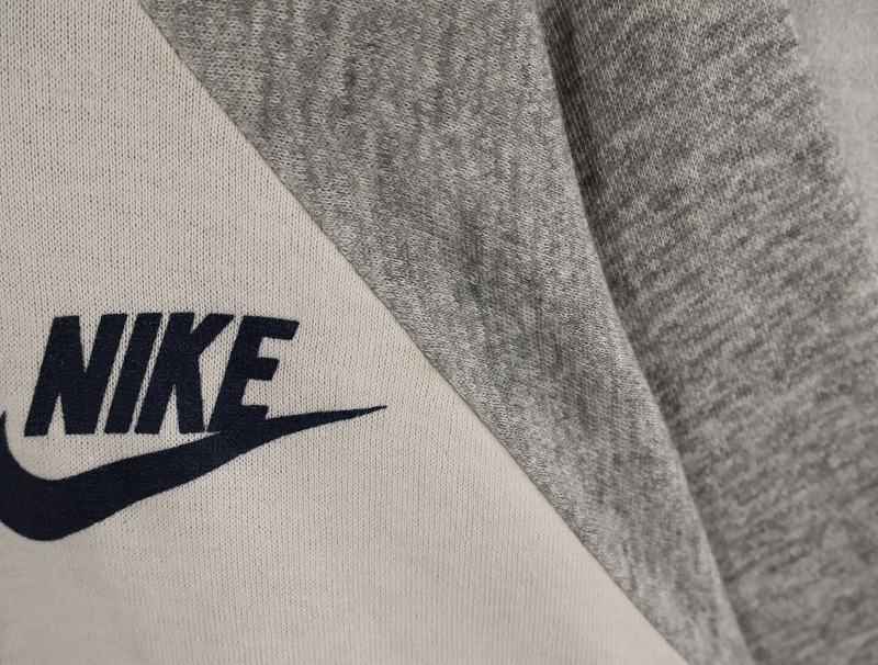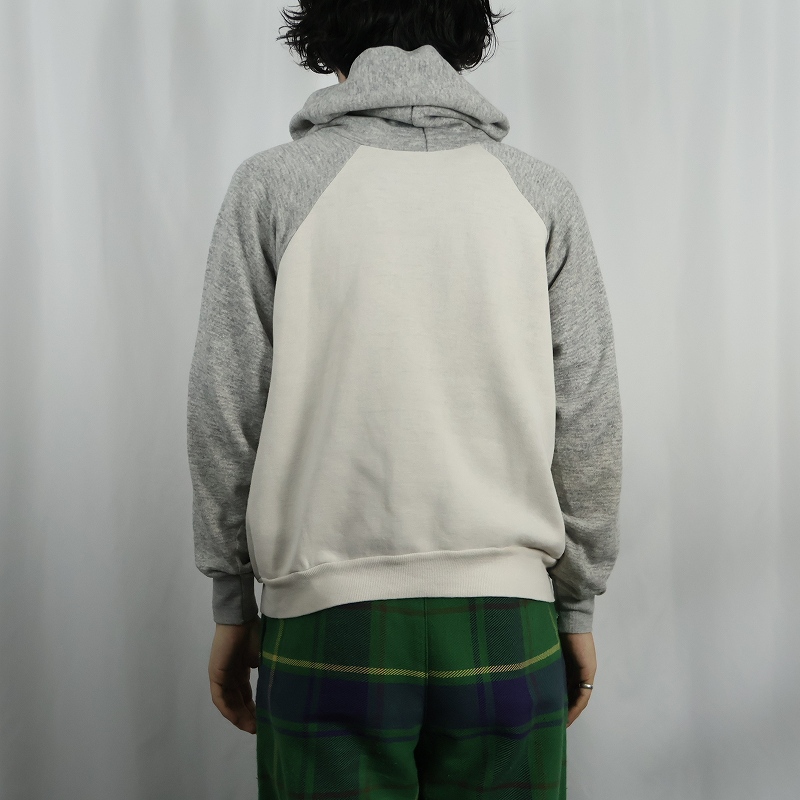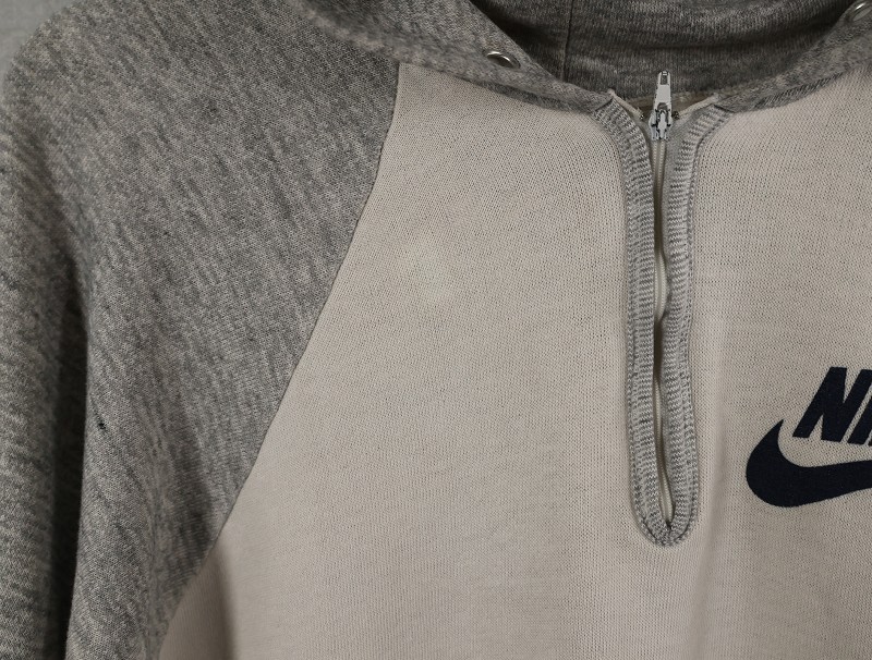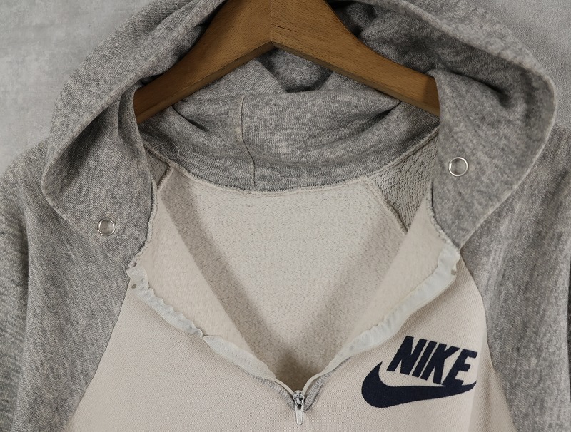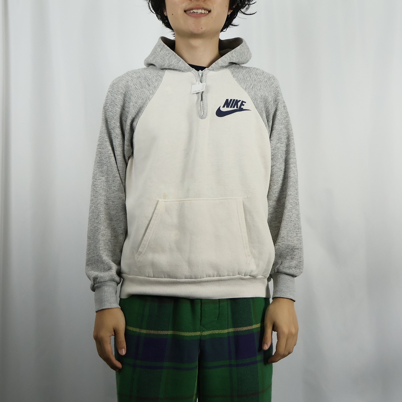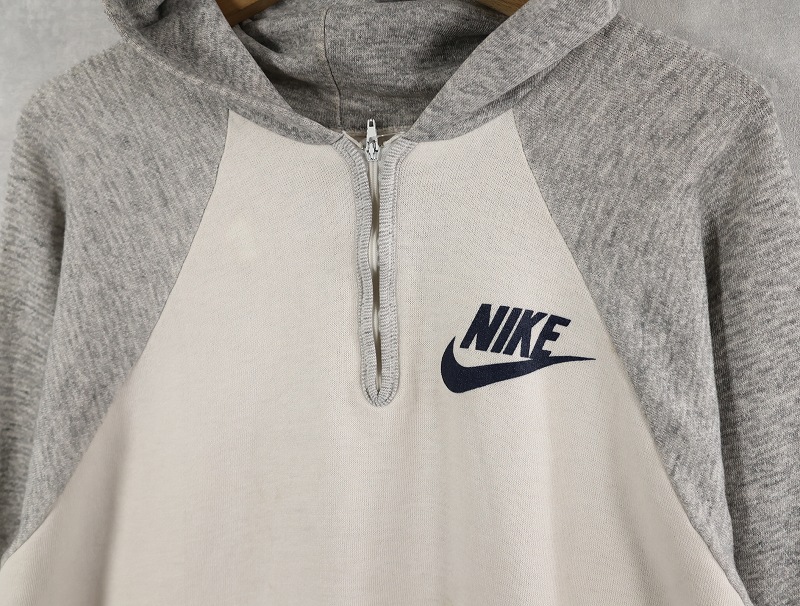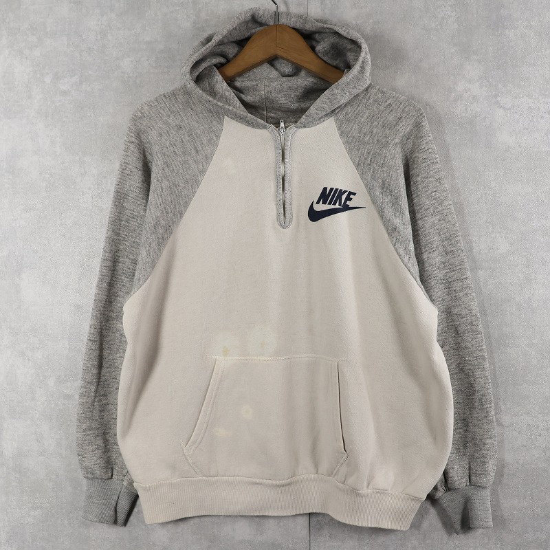 70's NIKE USA製 オレンジタグ ロゴプリント ハーフジップ ラグランスウェットフーディ L [158669]
