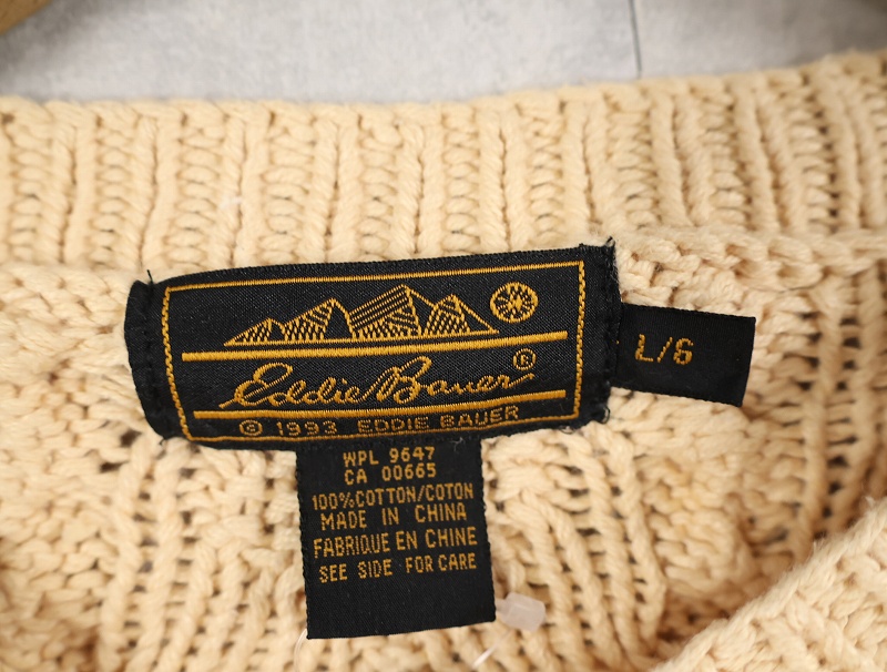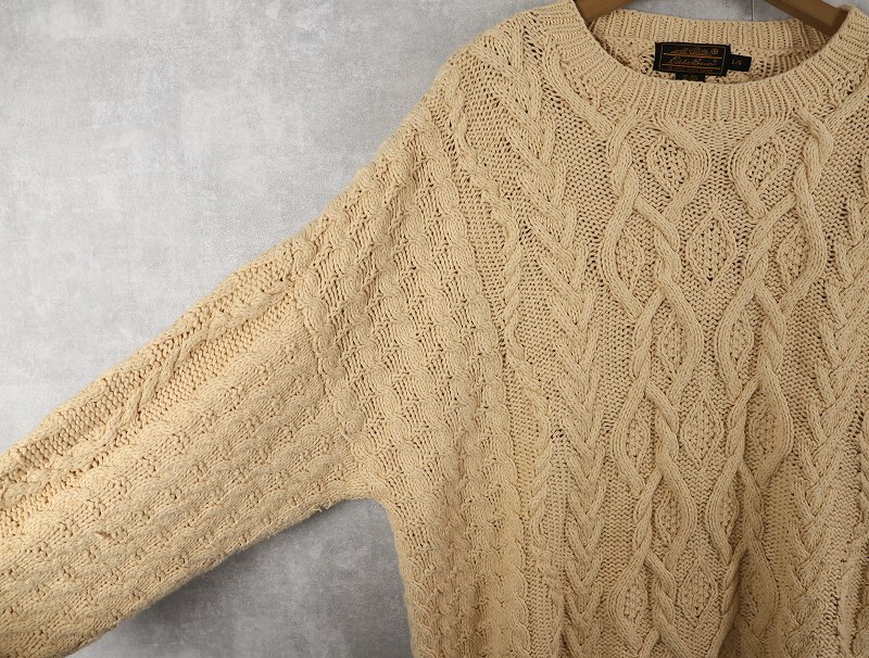 90's Eddie Bauer コットン アランニットセーター L [158670]