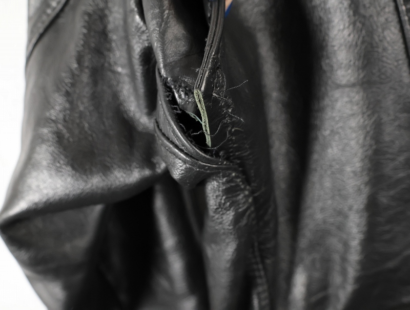- 少しのよごれや、バックの脇付近にほつれ、裏地にダメージがありますが、雰囲気が出ており、大変かっこいい一点です。