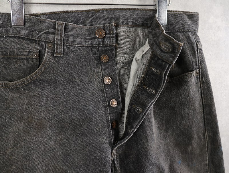 90's Levi's 501 USA製 先染め ブラックデニムパンツ W33 [158682]
