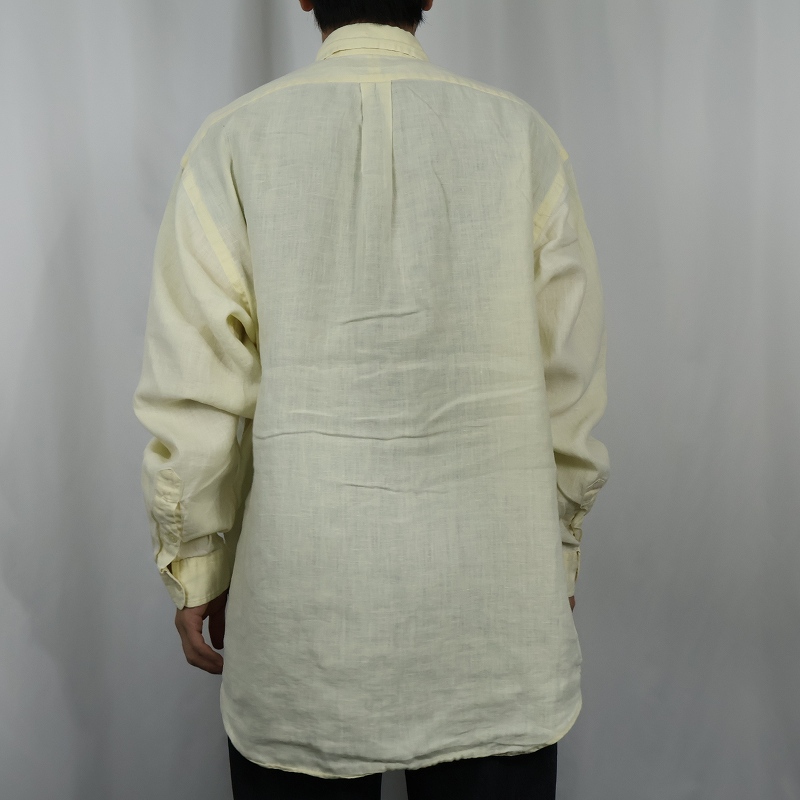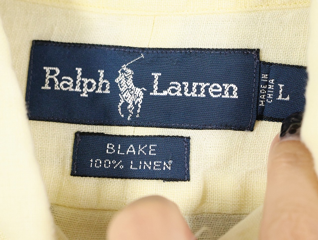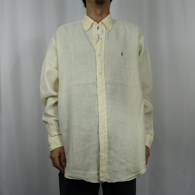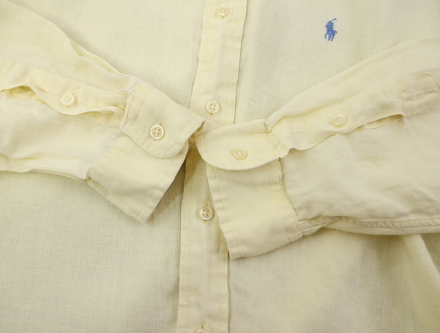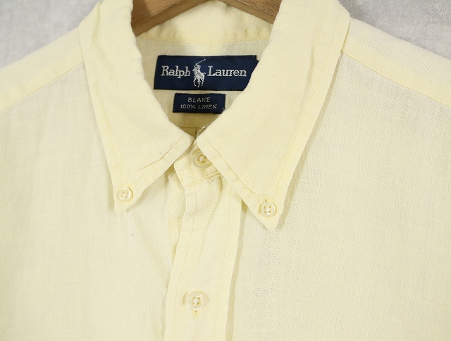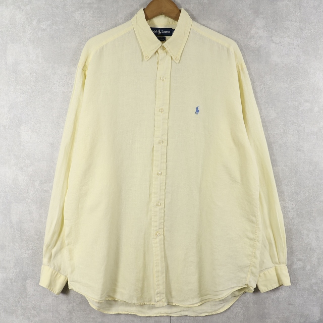 Ralph Lauren "BLAKE" ロゴ刺繍 リネンボタンダウンシャツ L [158707]