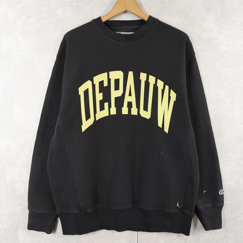 Champion REVERSE WEAVE "DEPAUW" プリントスウェット BLACK M [158728]