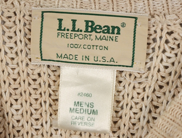 80〜90's L.L.Bean USA製 コットン フィッシャーマンセーター M [158781]