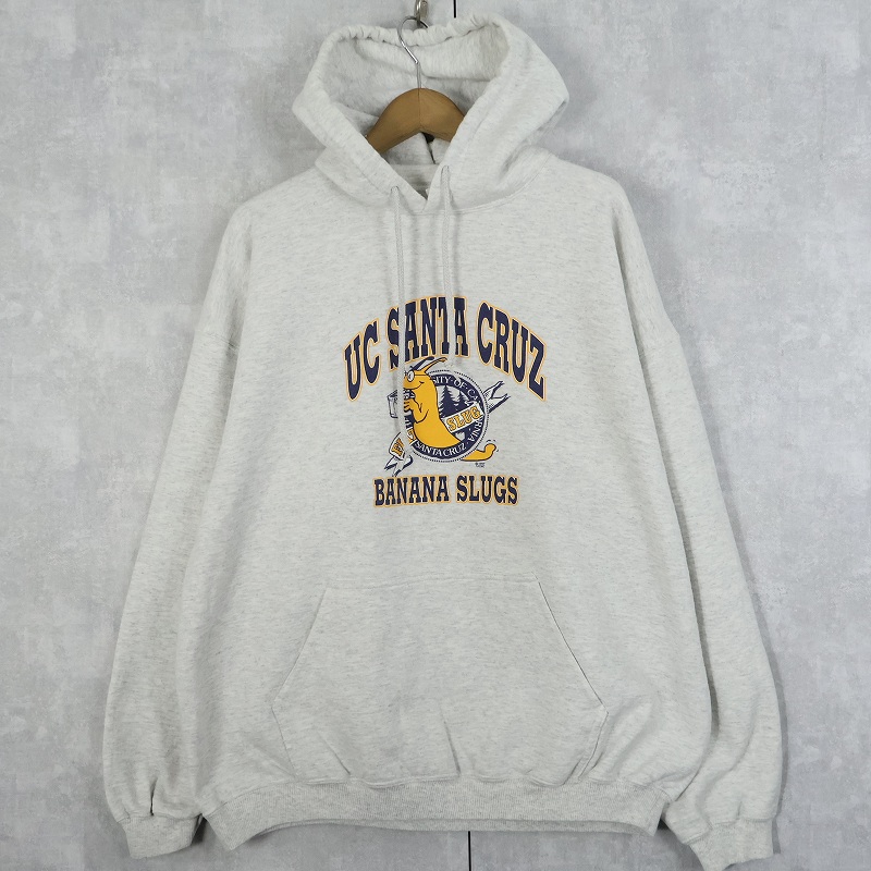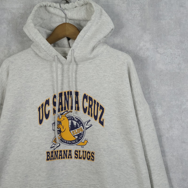 90's UC SANTA CRUZ "BANANA SLUGS" プリントスウェットフーディ XL [158797]