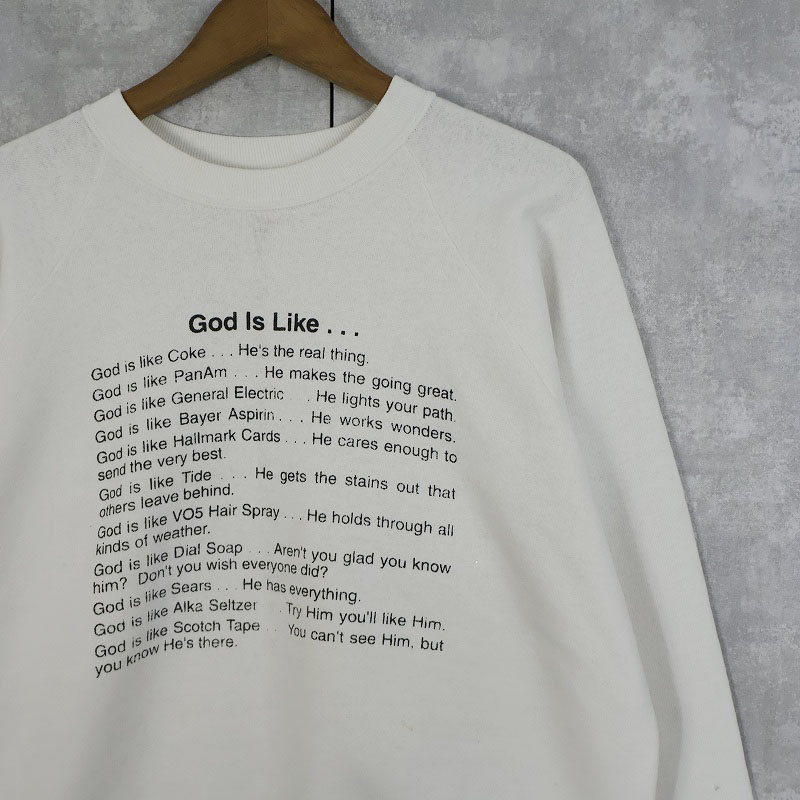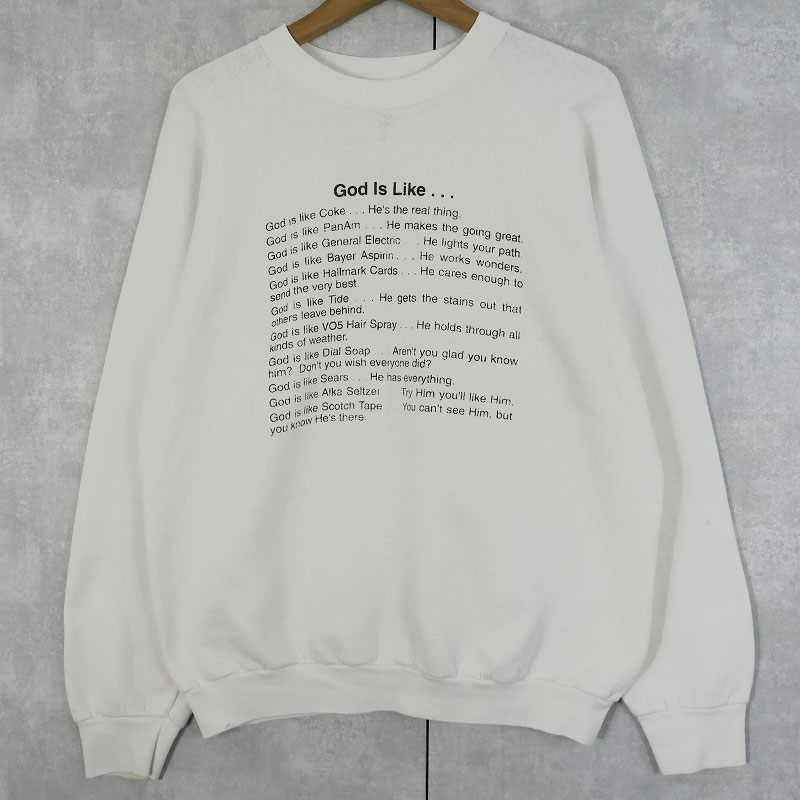 90's USA製 "God Is Like..." ジーザスプリントスウェット L [158798]