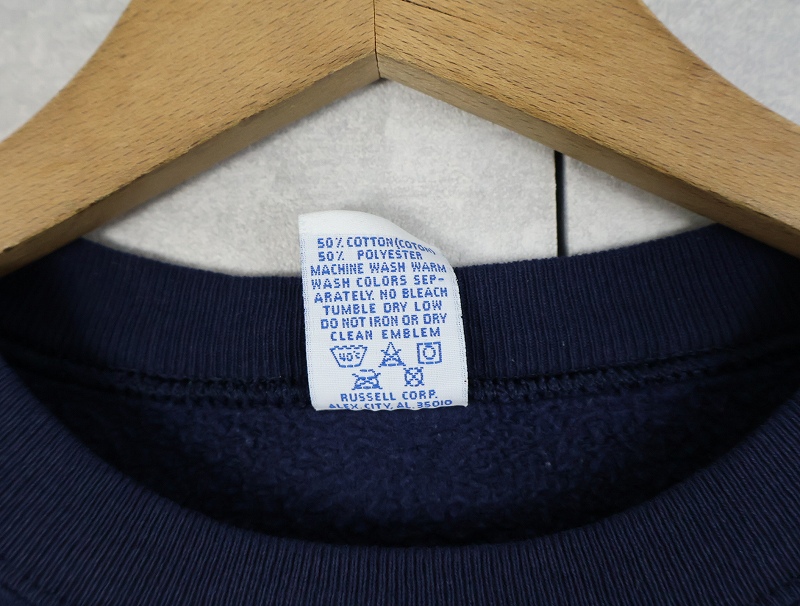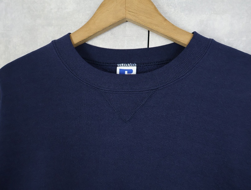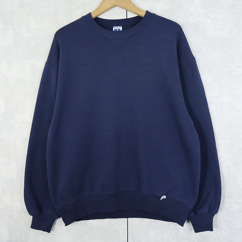 90's RUSSELL ATHLETIC USA製 前V 無地スウェット NAVY L [158800]