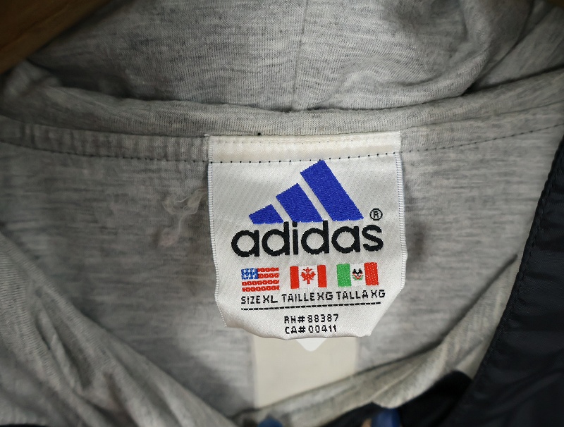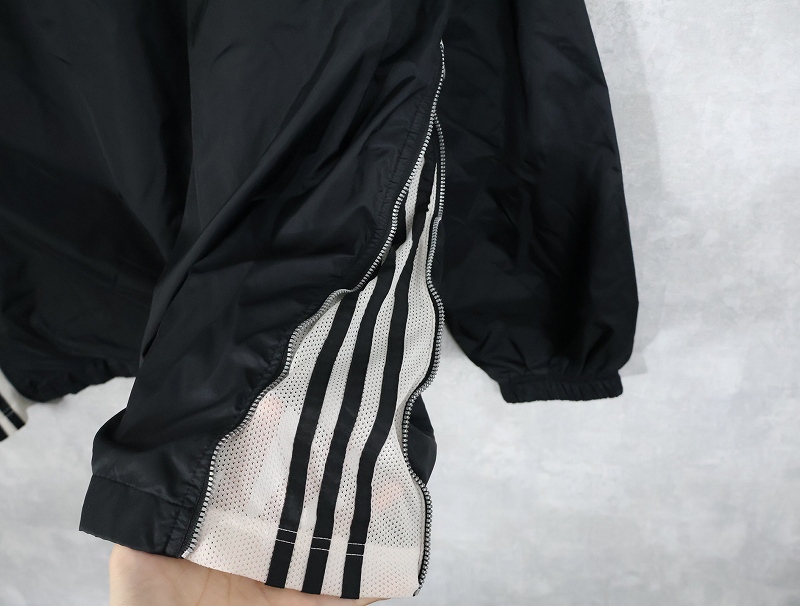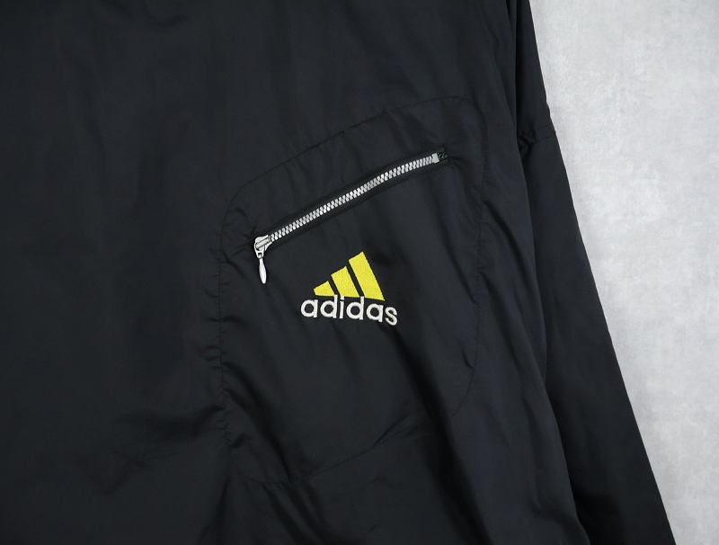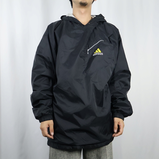 90's adidas サイドジップ ナイロンフーディ BLACK XL [158804]
