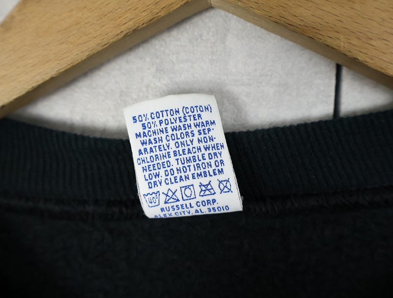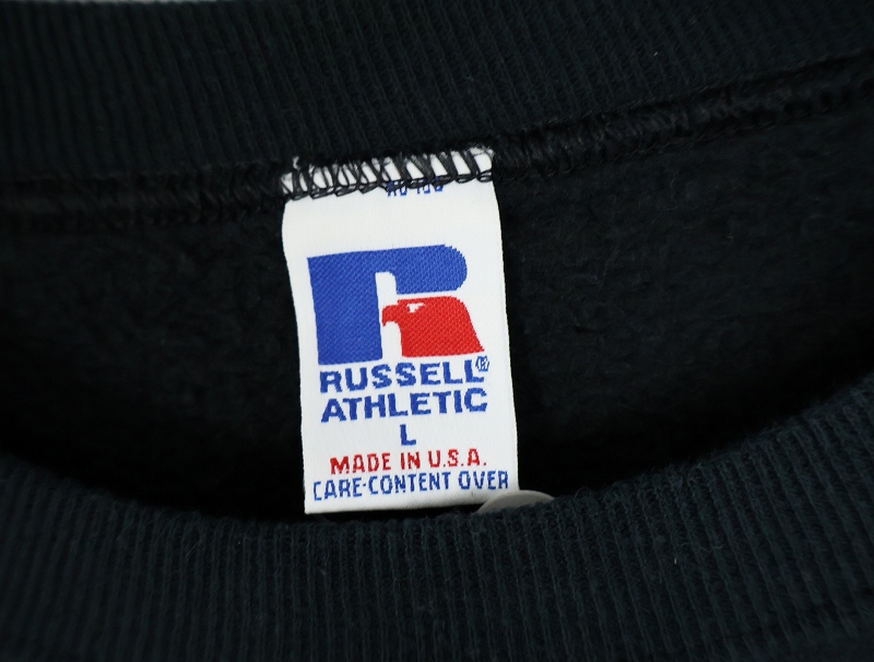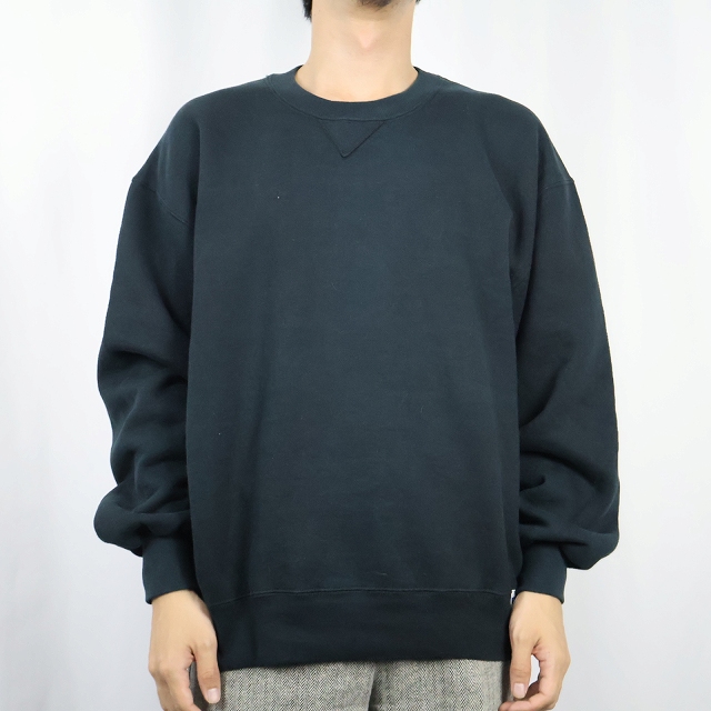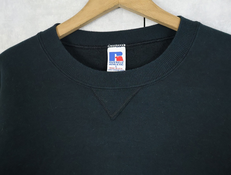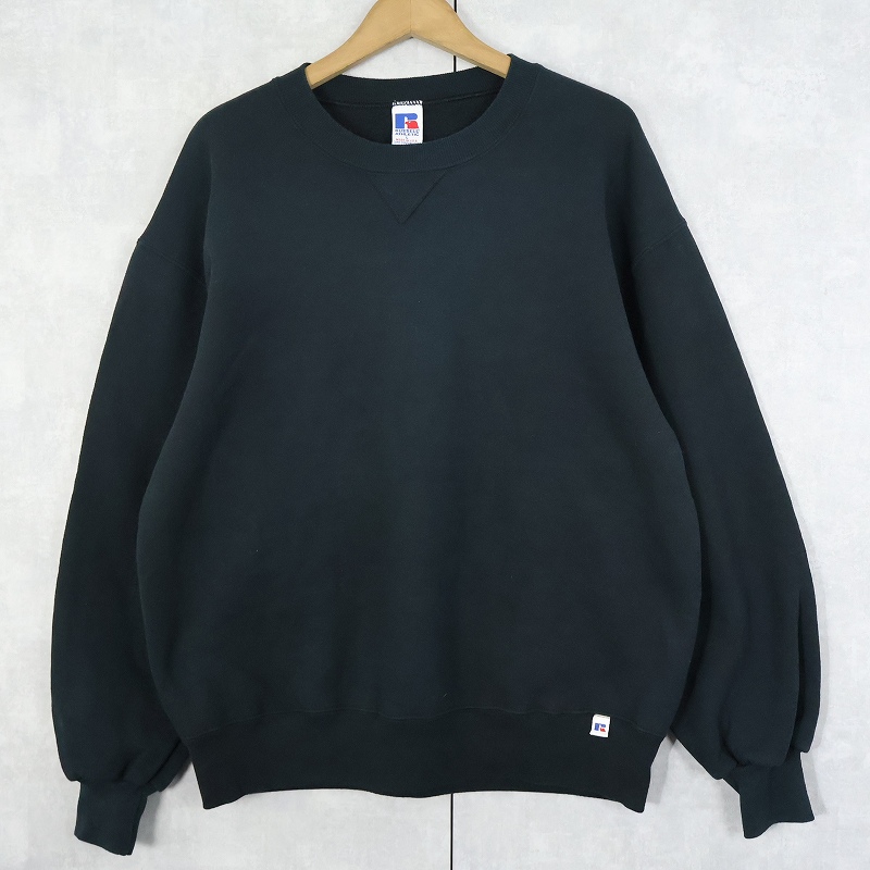 90's RUSSELL ATHLETIC USA製 前V 無地スウェット BLACK L [158805]