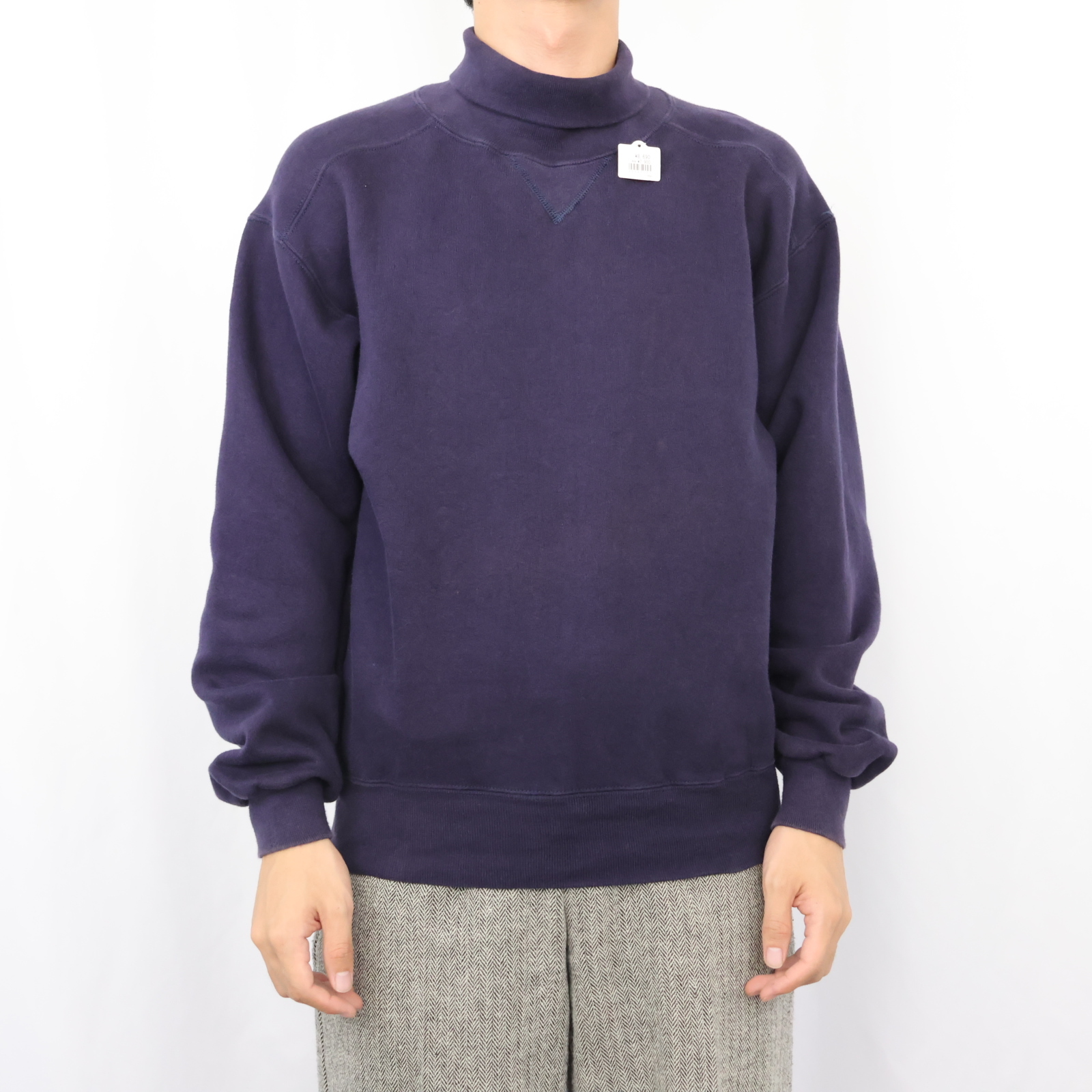 90's L.L.Bean by RUSSELL ATHLETIC USA製 前V タートルネックスウェット NAVY S [158822]