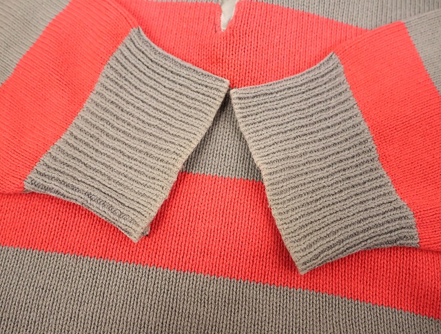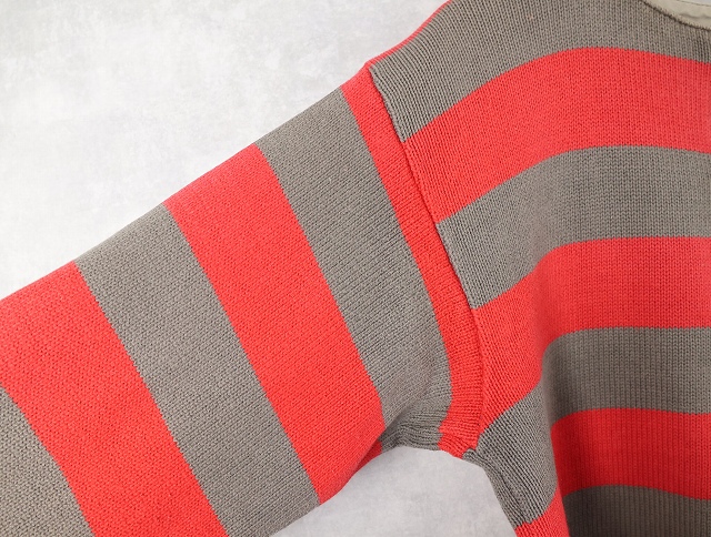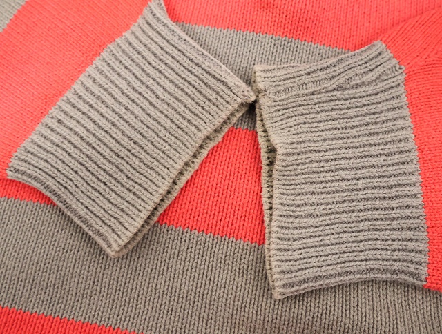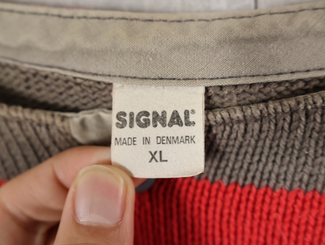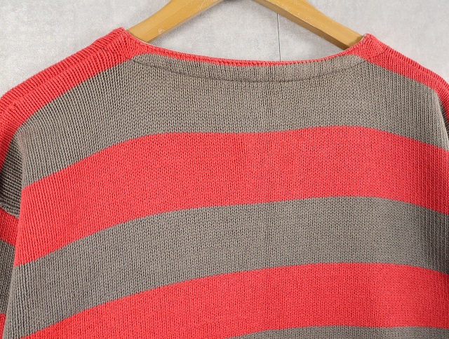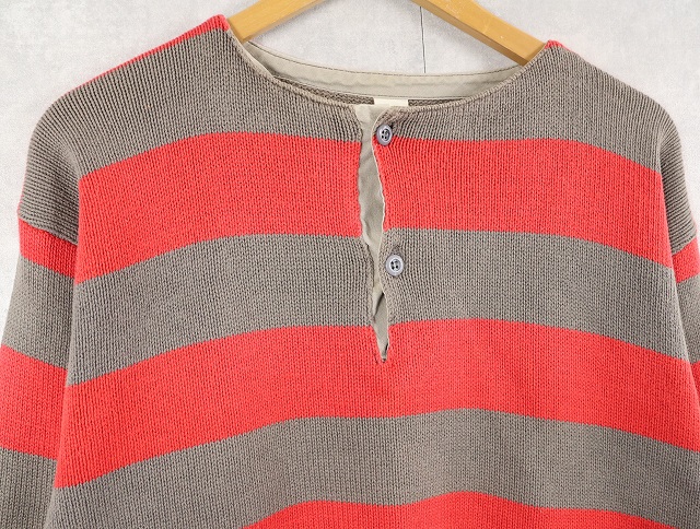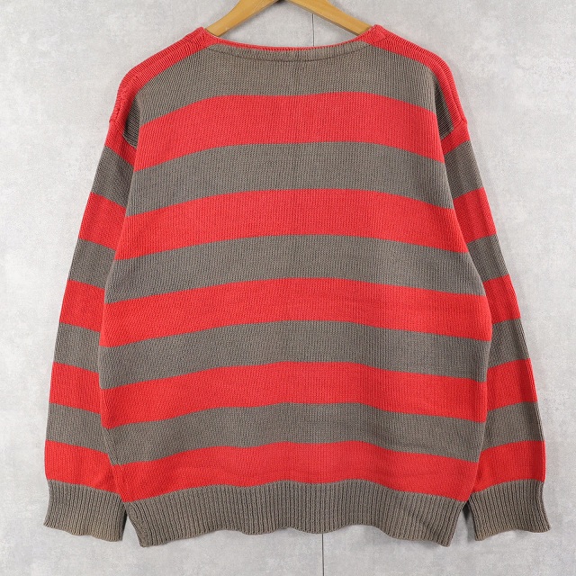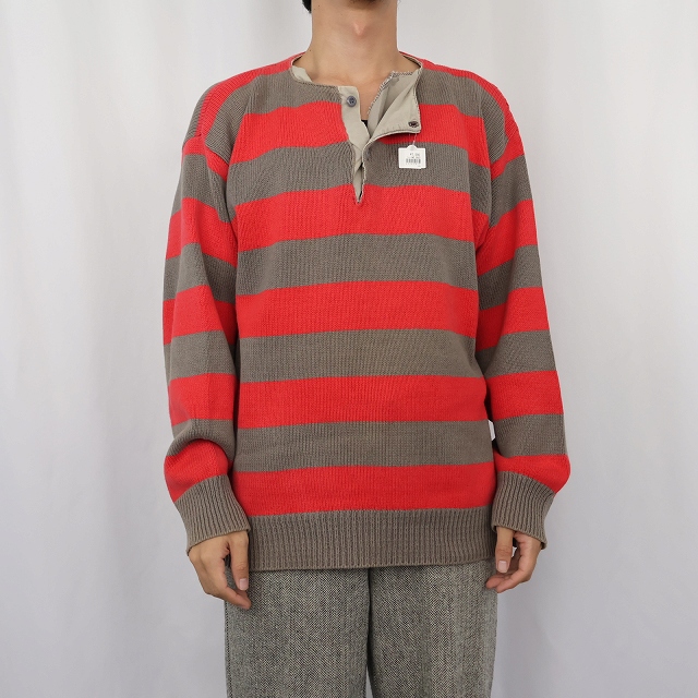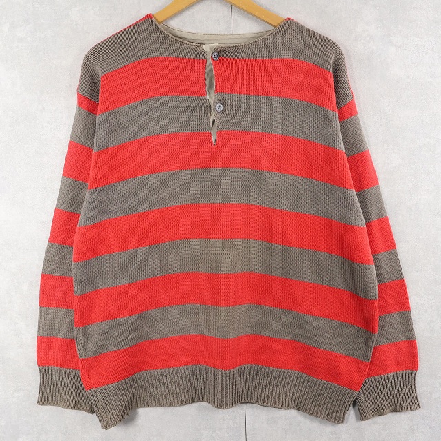 80〜90's SIGNAL DENMARK製 ボーダー柄 ヘンリーネック コットンニットセーター XL [158825]