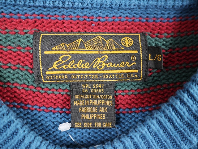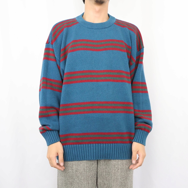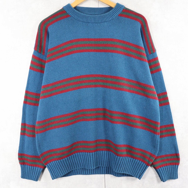 90's Eddie Bauer ボーダー柄 コットンニットセーター L [158832]