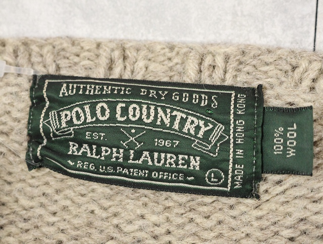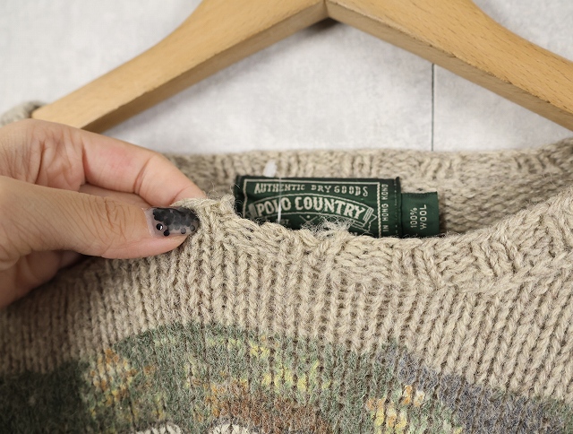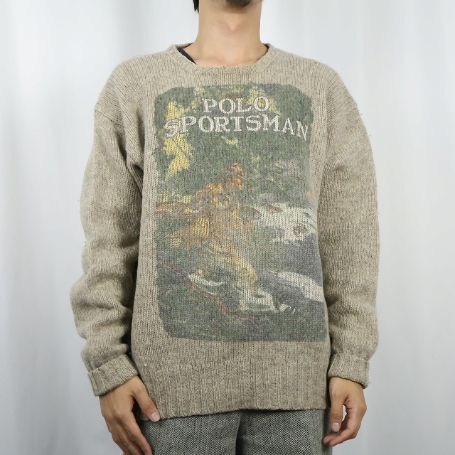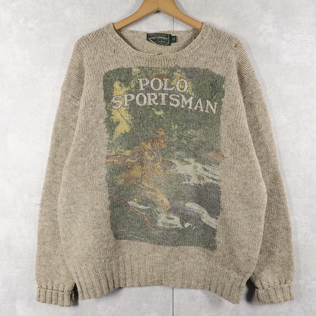 80〜90's POLO COUNTRY Ralph Lauren USA製 "POLO SPORTSMAN" プリント ウールニットセーター L [158847]