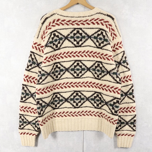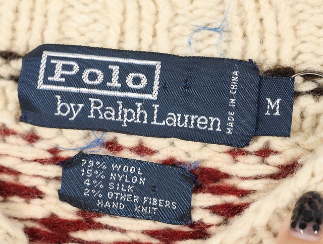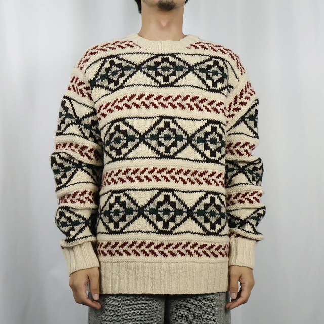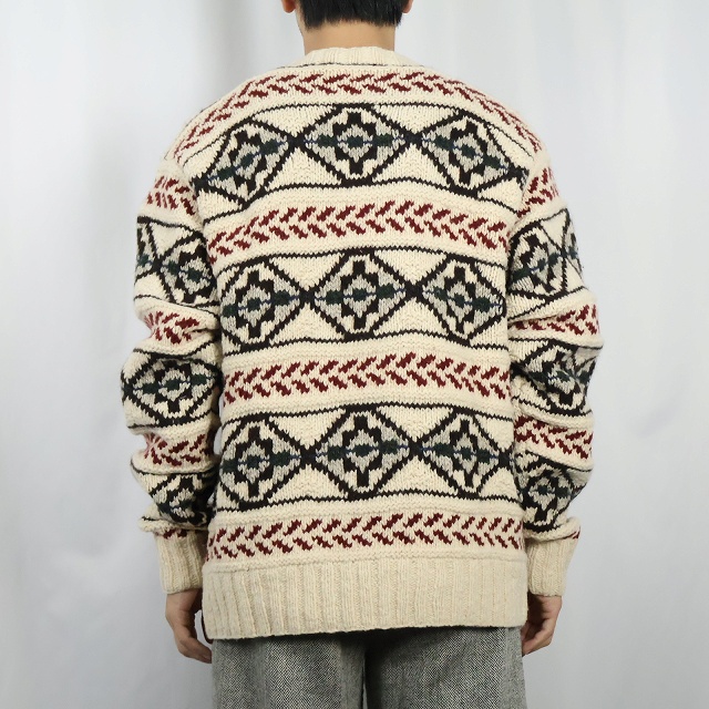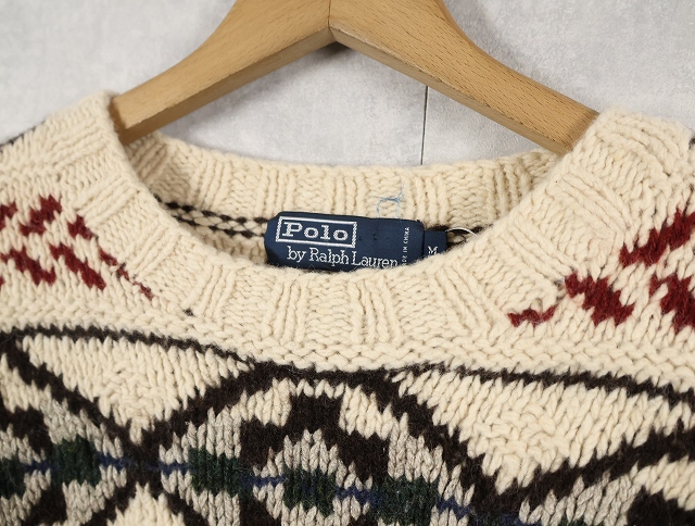 90's〜 POLO Ralph Lauren ネイティブ柄 ウール ハンドニットセーター M [158848]