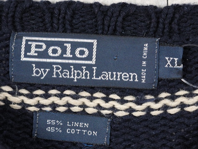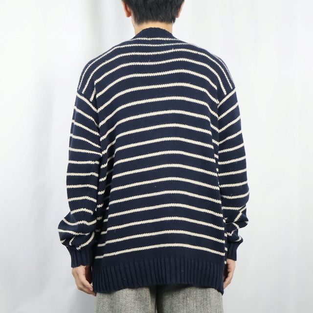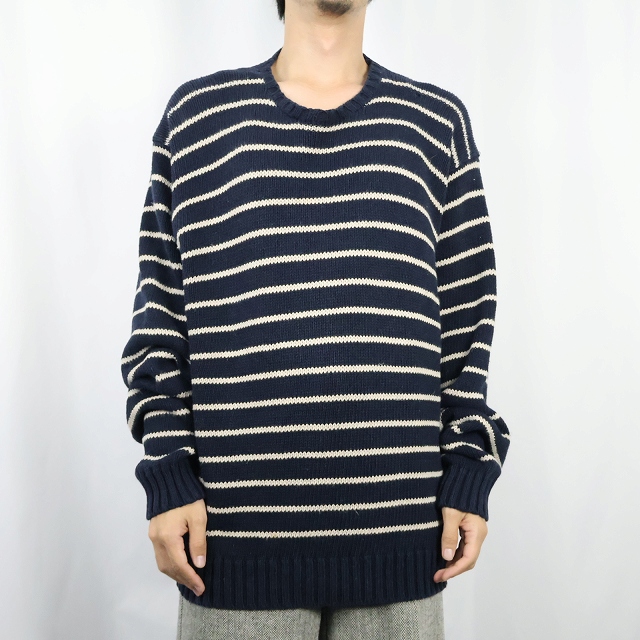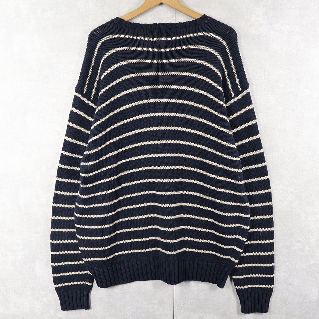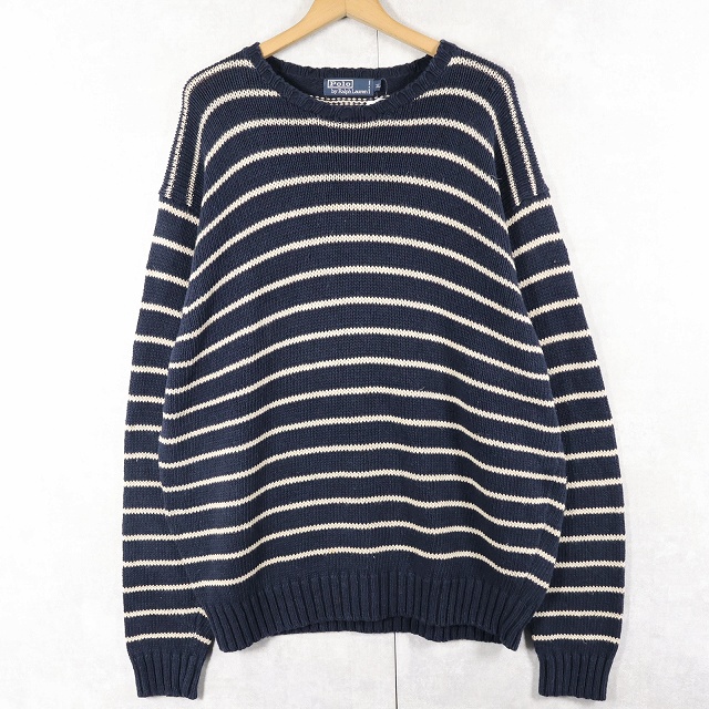 POLO Ralph Lauren ボーダー柄 リネンコットン ニットセーター NAVY XL [158849]