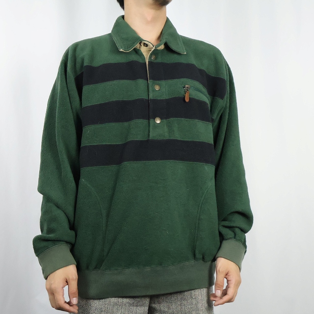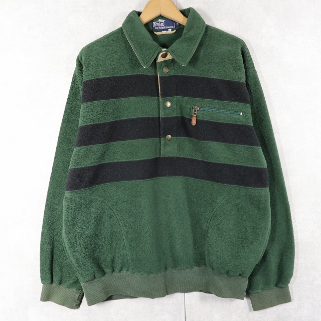 90's〜 POLO Ralph Lauren ボーダー柄 ハーフスナップフリースジャケット M [158861]