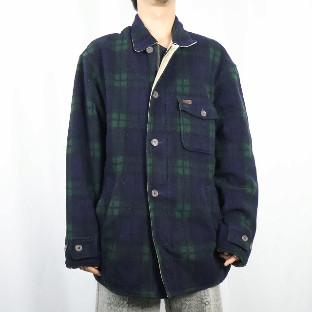 90's POLO Ralph Lauren USA製 ブラックウォッチチェック柄 フリースジャケット L [158862]