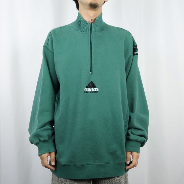 90's adidas EQUIPMENT ロゴ刺繍 ハーフジップスウェット XL [158886]