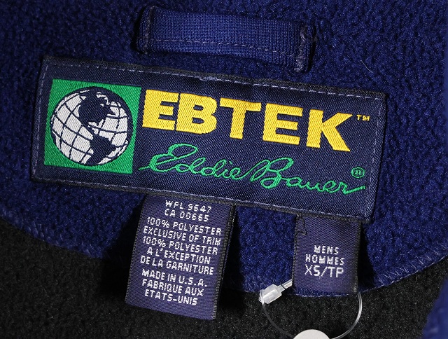 90's Eddie Bauer EBTEK USA製 ロゴ刺繍 フリースベスト BLACK XS [158895]