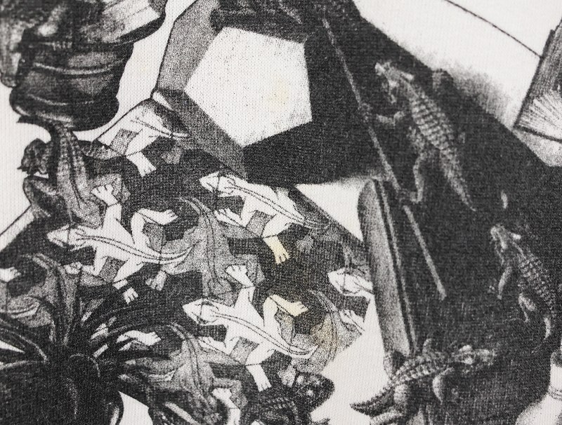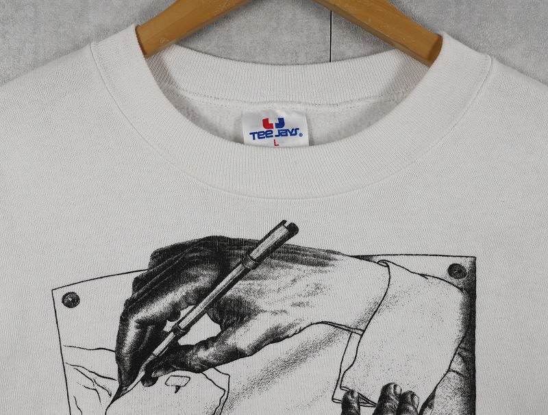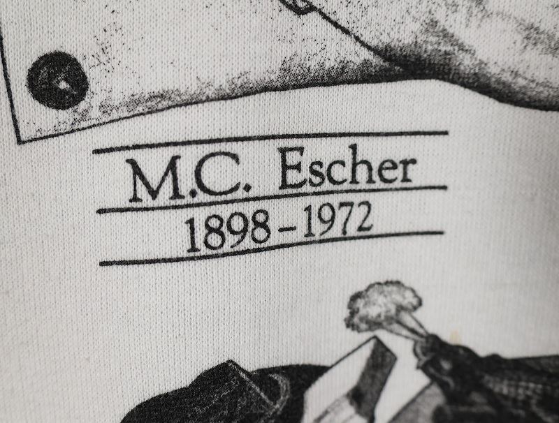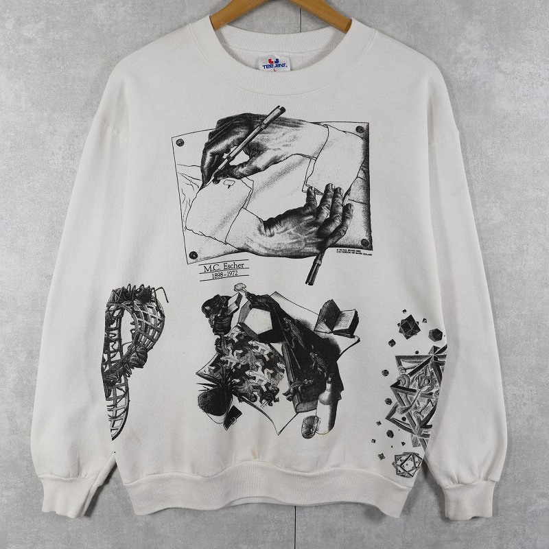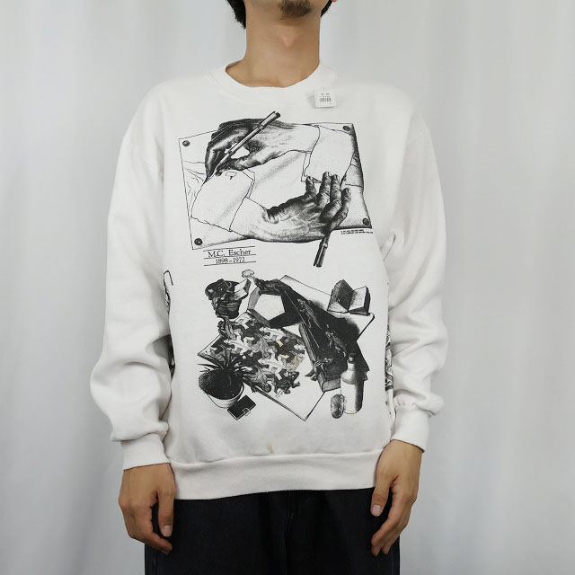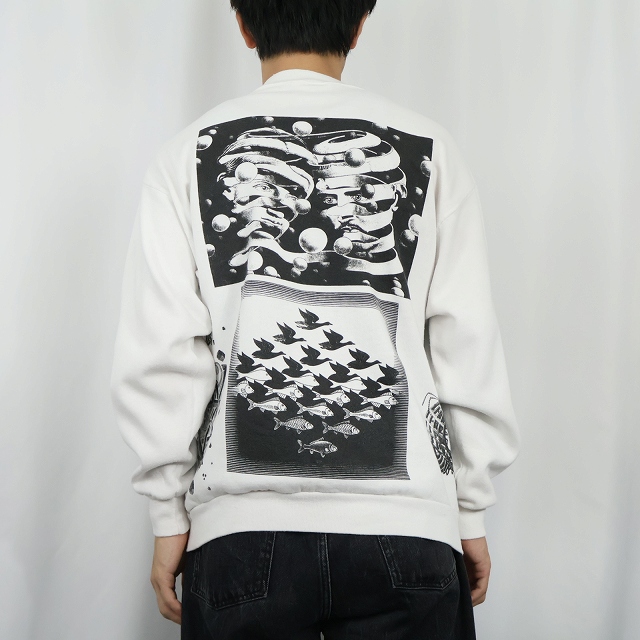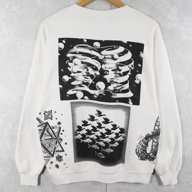 90's M.C. Escher USA製 騙し絵アート マルチプリントスウェット L [158901]
