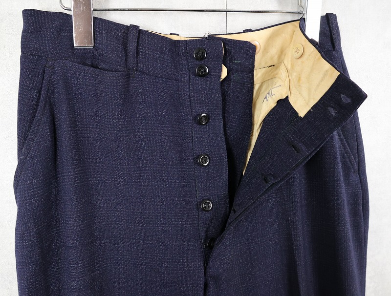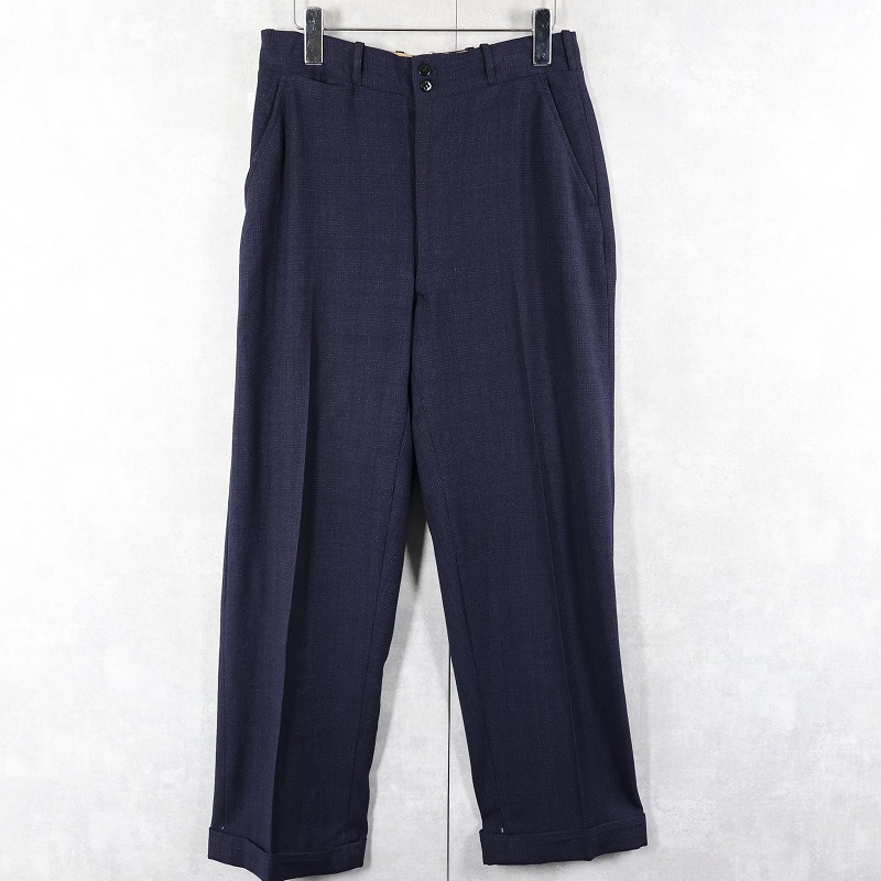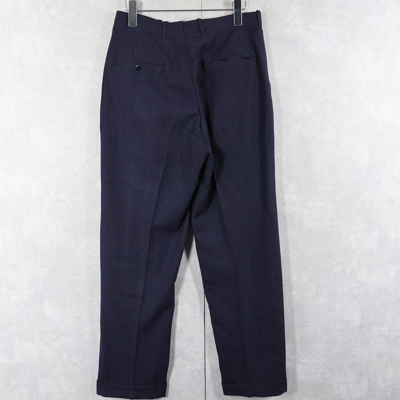 50〜60's チェック柄 ウールスラックス NAVY W29 [158908]