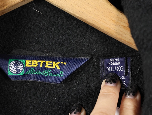 90's Eddie Bauer EBTEK USA製 "POLARTEC" ロゴ刺繍 フリースジップジャケット BLACK XL [158911]