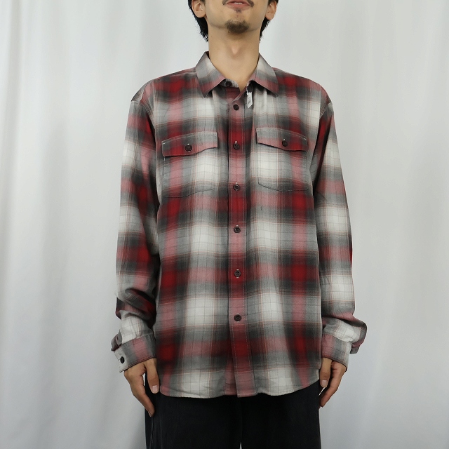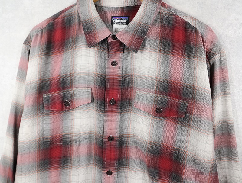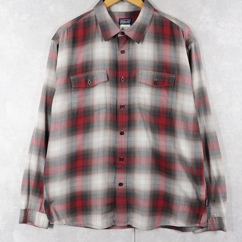 2013AW Patagonia コットン×ポリエステル オンブレーチェック柄 コットンシャツ L [158915]