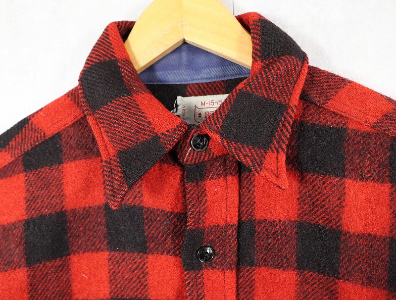 60's BRENT バッファローチェック柄 ウールシャツ M [158917]