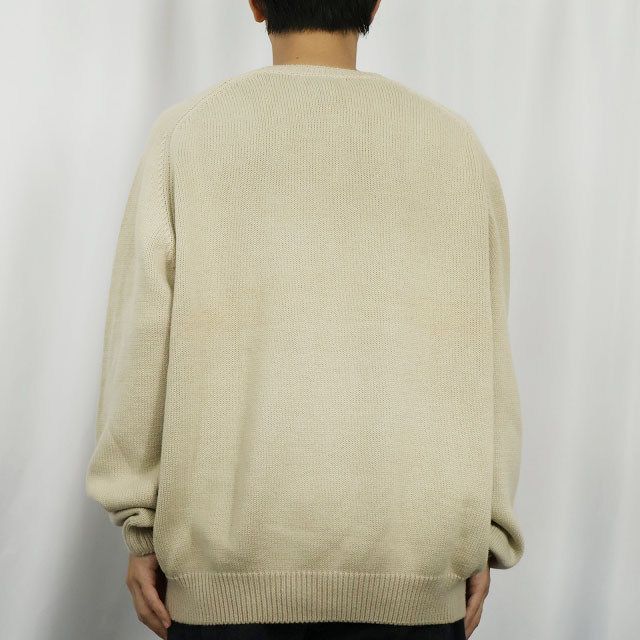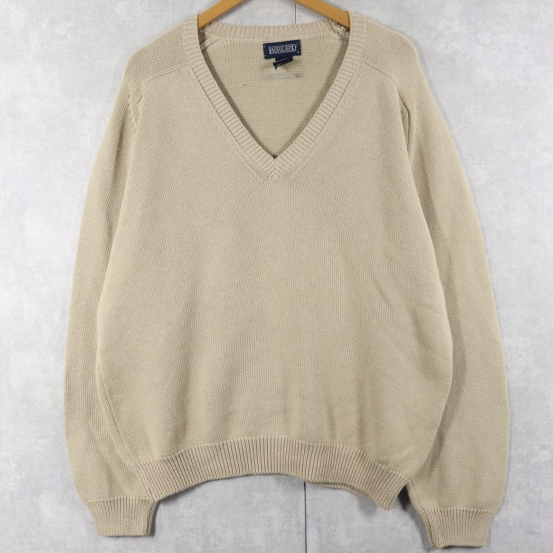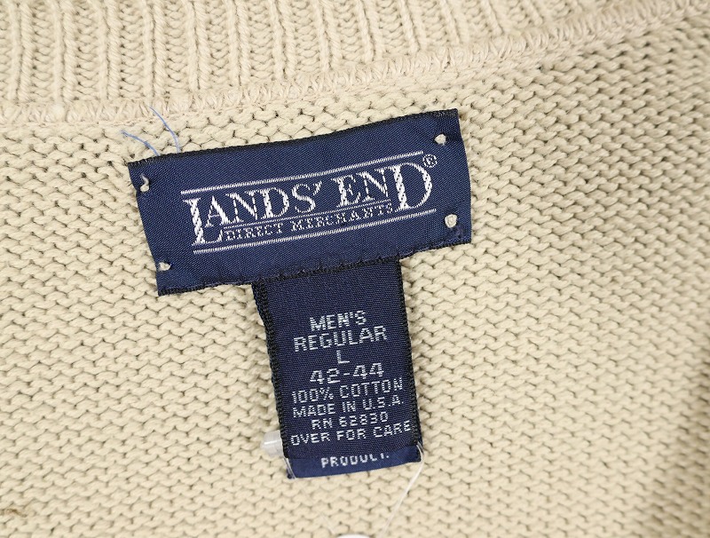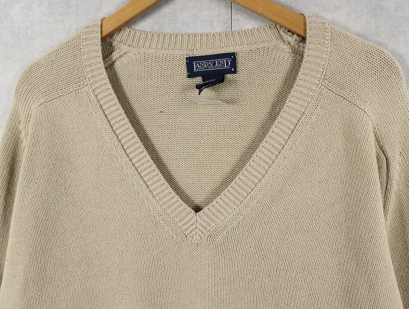 90's LANDS'END USA製 Vネック コットンニットセーター L [158920]
