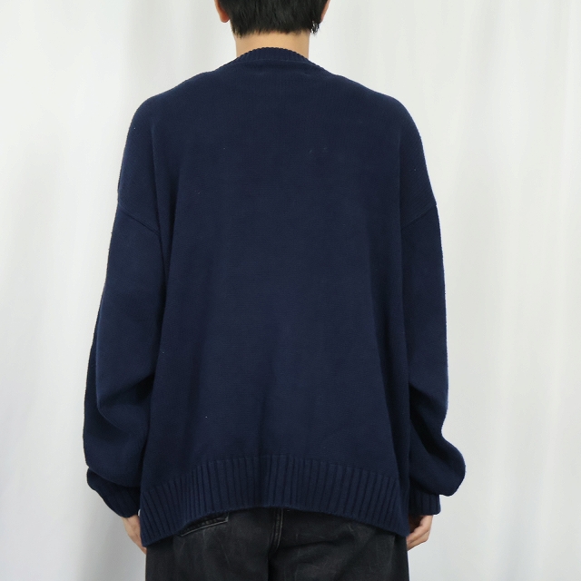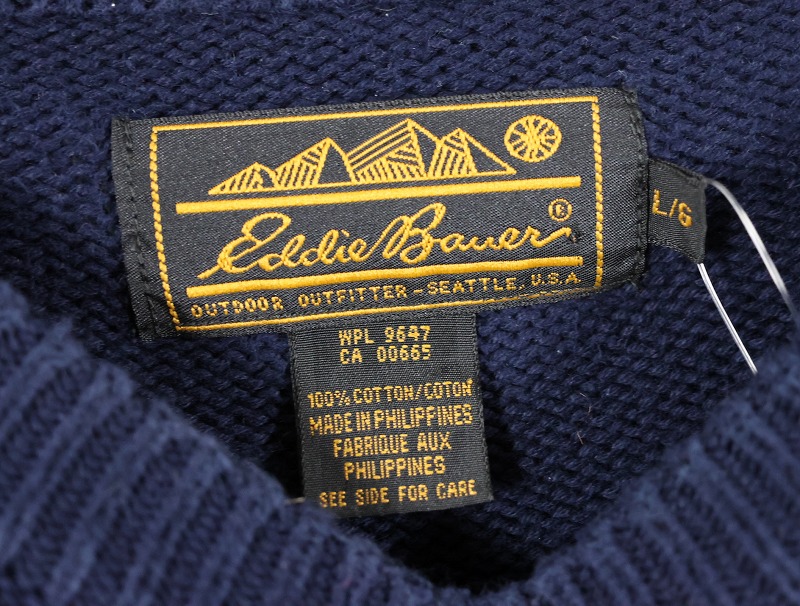 90's Eddie Bauer コットンニットセーター NAVY L [158921]