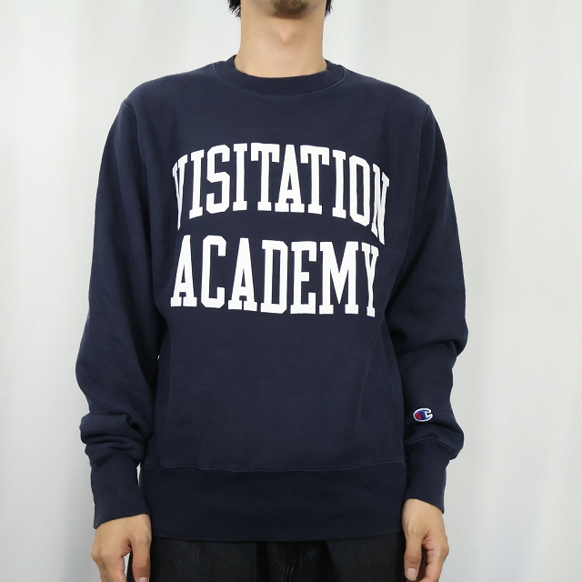 Champion REVERSE WEAVE "VISITATION ACADEMY" プリントスウェット NAVY S [158929]