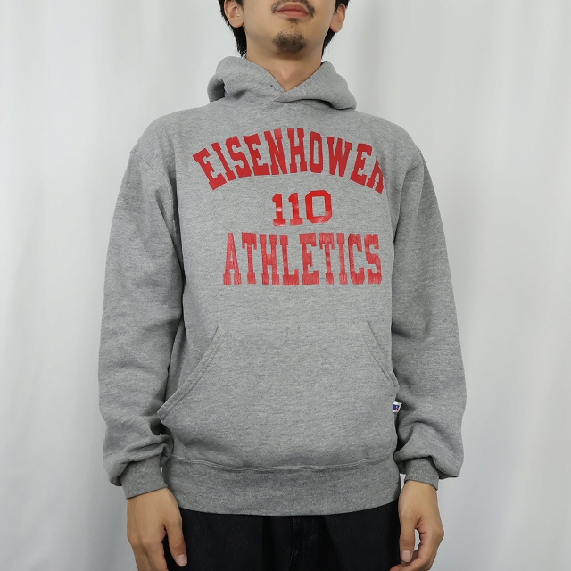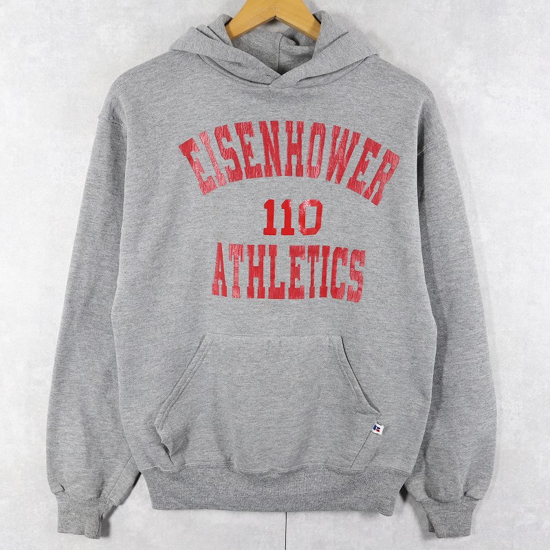 90's RUSSELL ATHLETIC USA製 "EISENHOWER ATHLETICS" プリントスウェットフーディー M [158932]