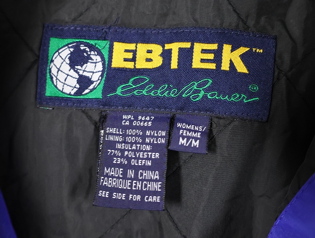 90's Eddie Bauer EBTEK "Thinsulate" ロゴパッチ付き 中綿入り ナイロンマウンテンパーカー M [158956]