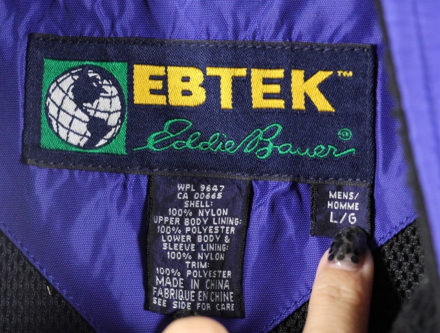 90's Eddie Bauer EBTEK ロゴ刺繍 ナイロンアノラックパーカー L [158960]