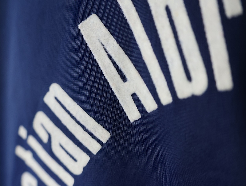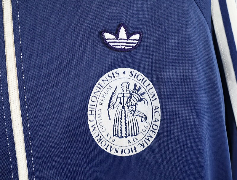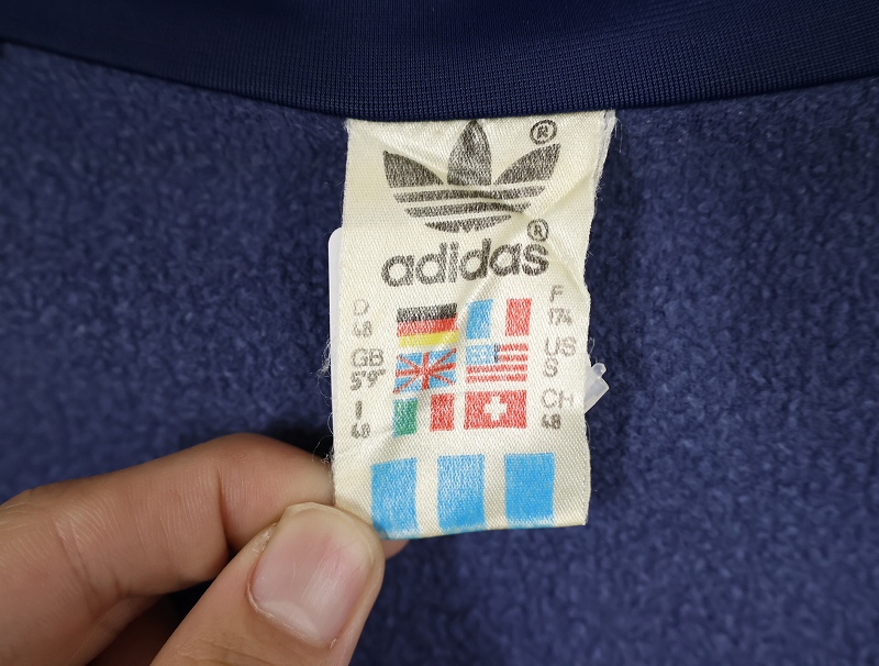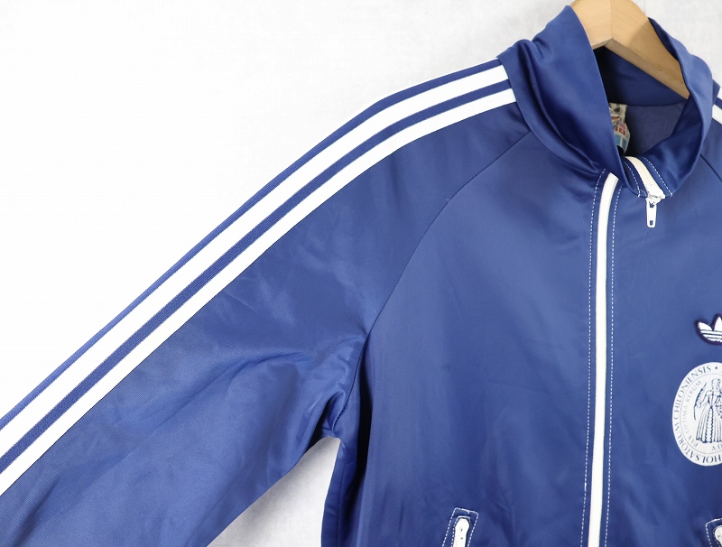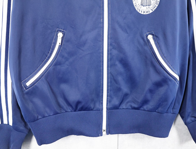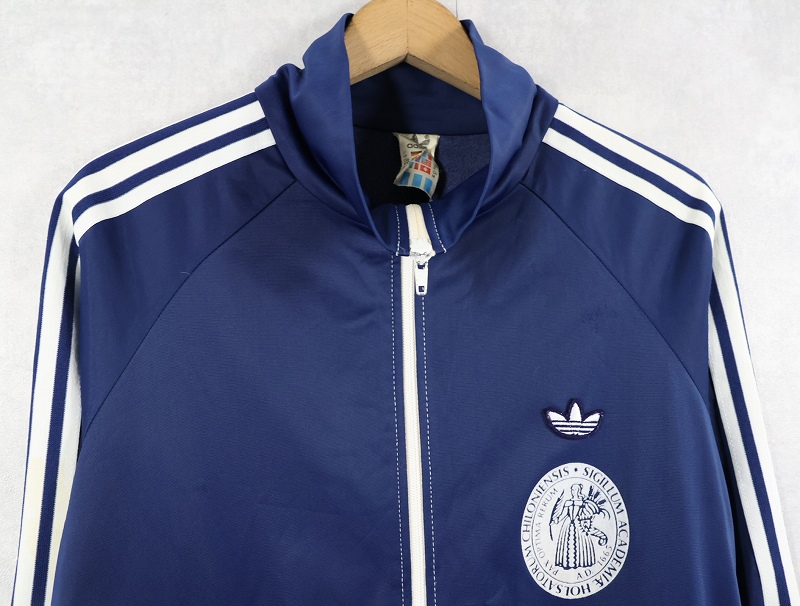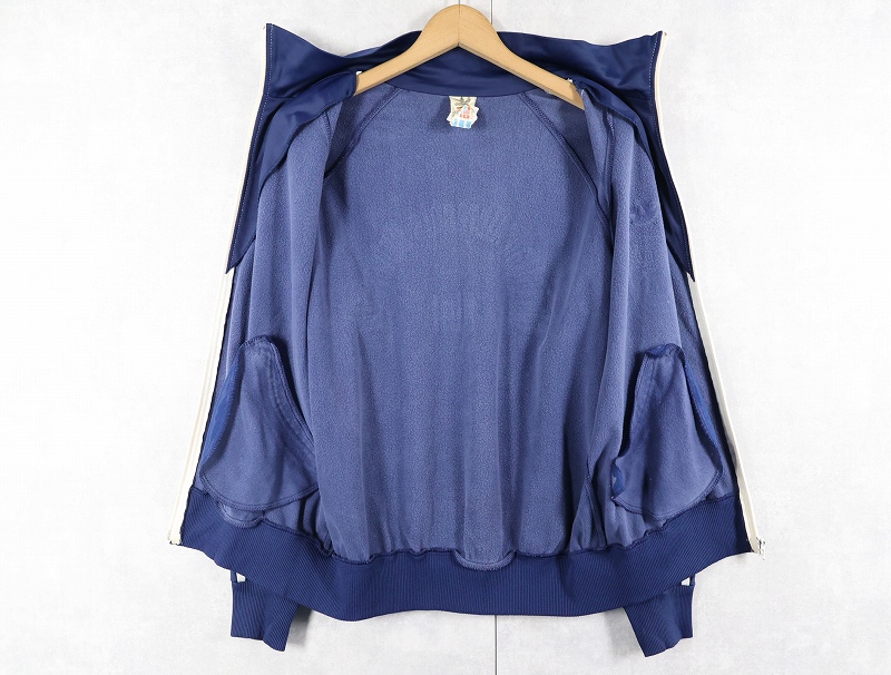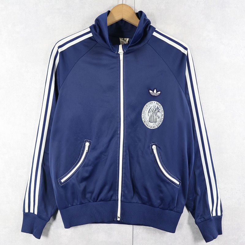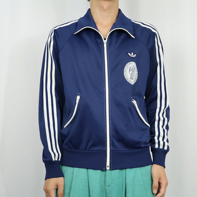 80〜90's adidas ロゴ刺繍 フロッキープリント トラックジャケット NAVY S [158970]