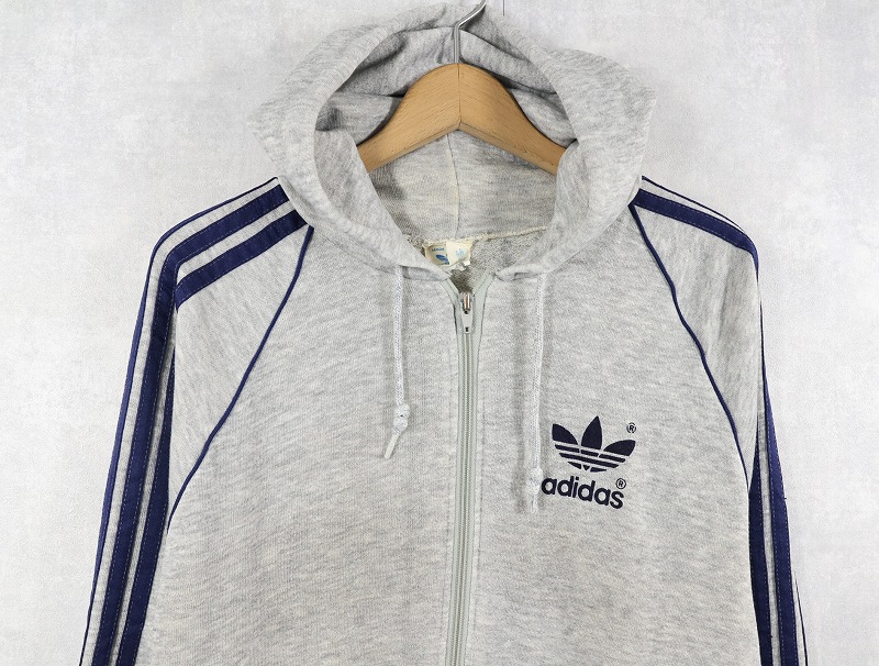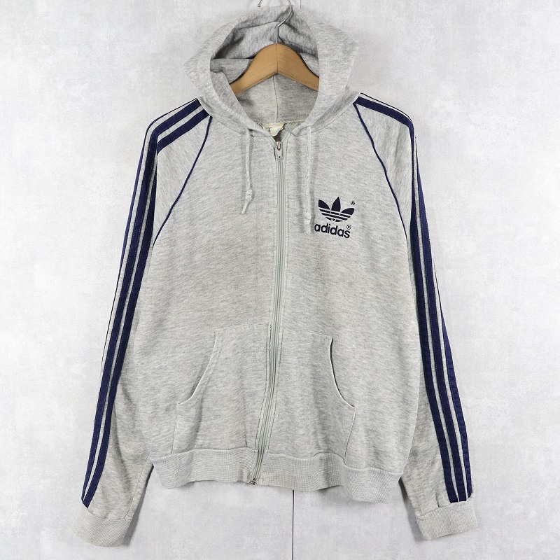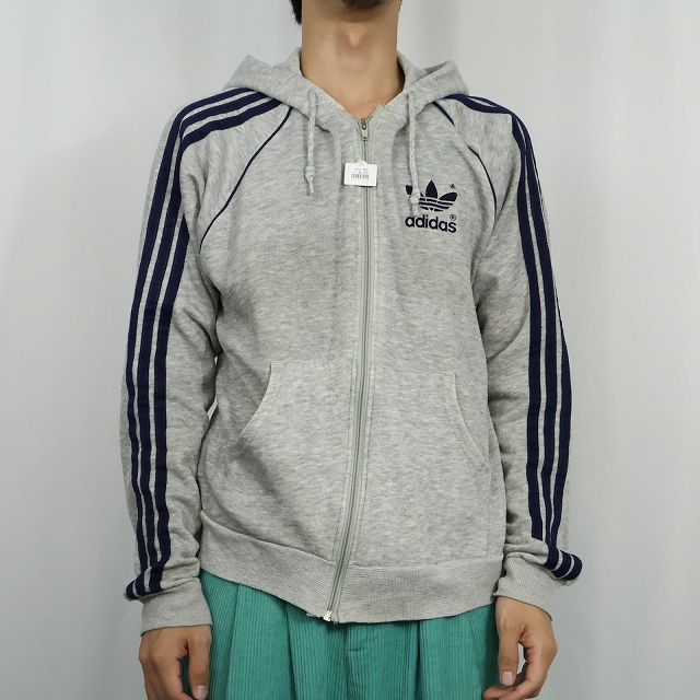 80's adidas USA製 ロゴプリント スウェットジップパーカー M [158971]