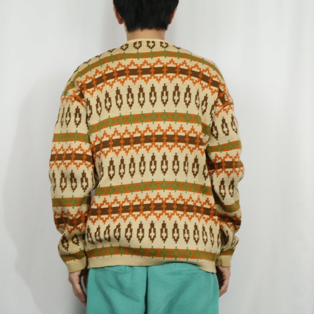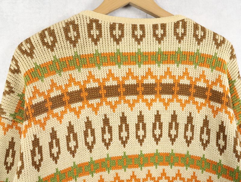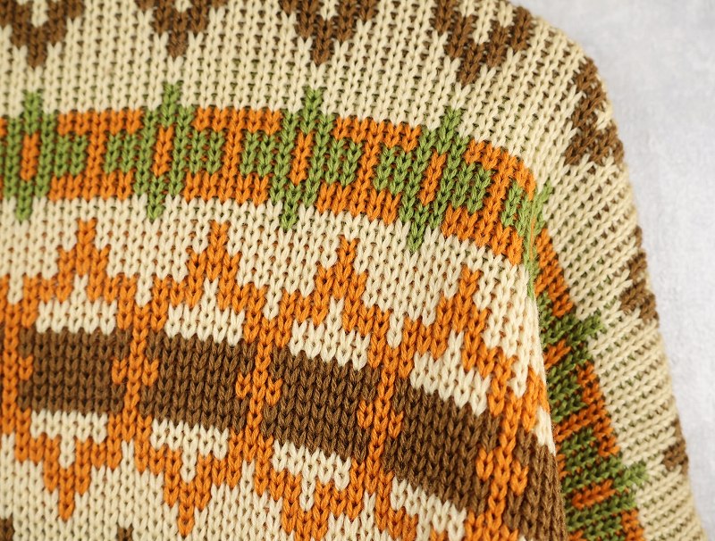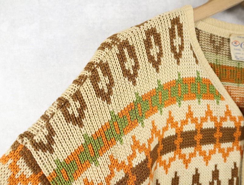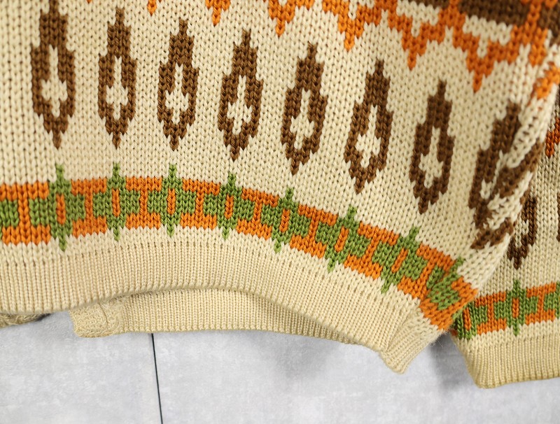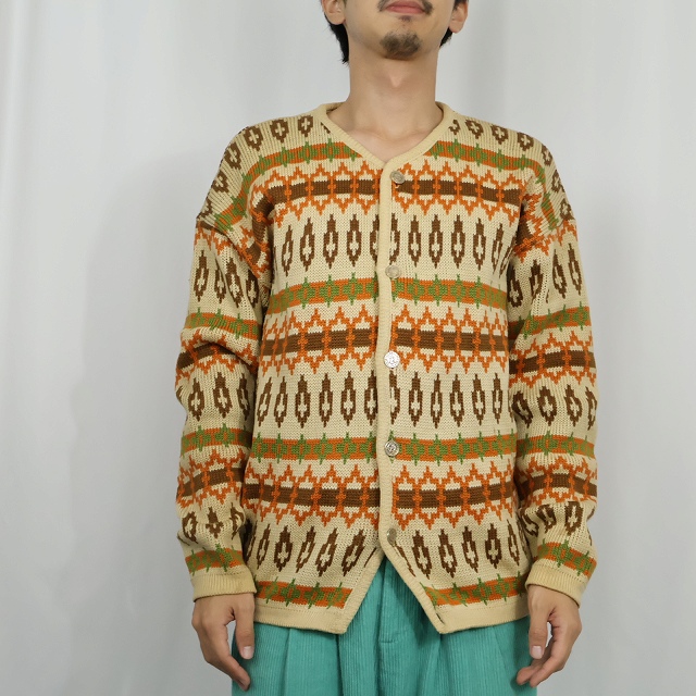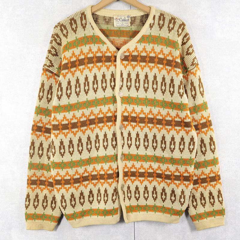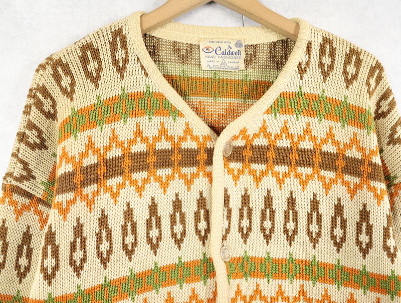 60's Caldwell CANADA製 ノルディック柄 ウールニットカーディガン M [158975]
