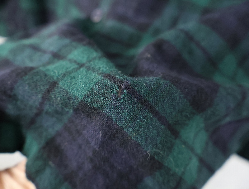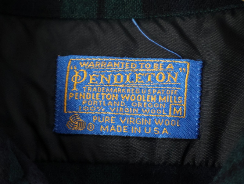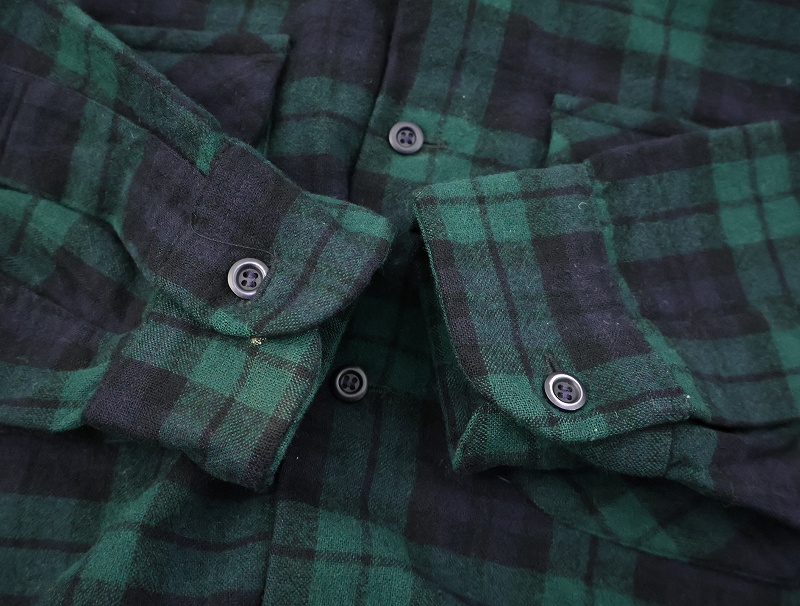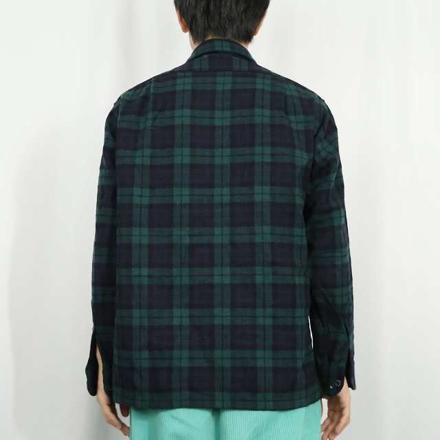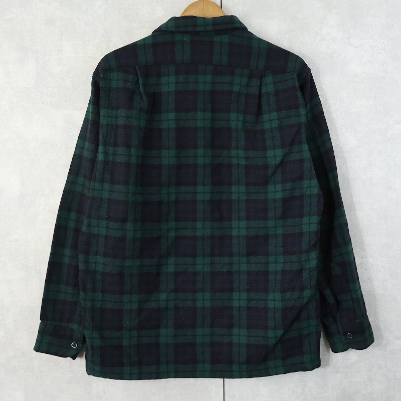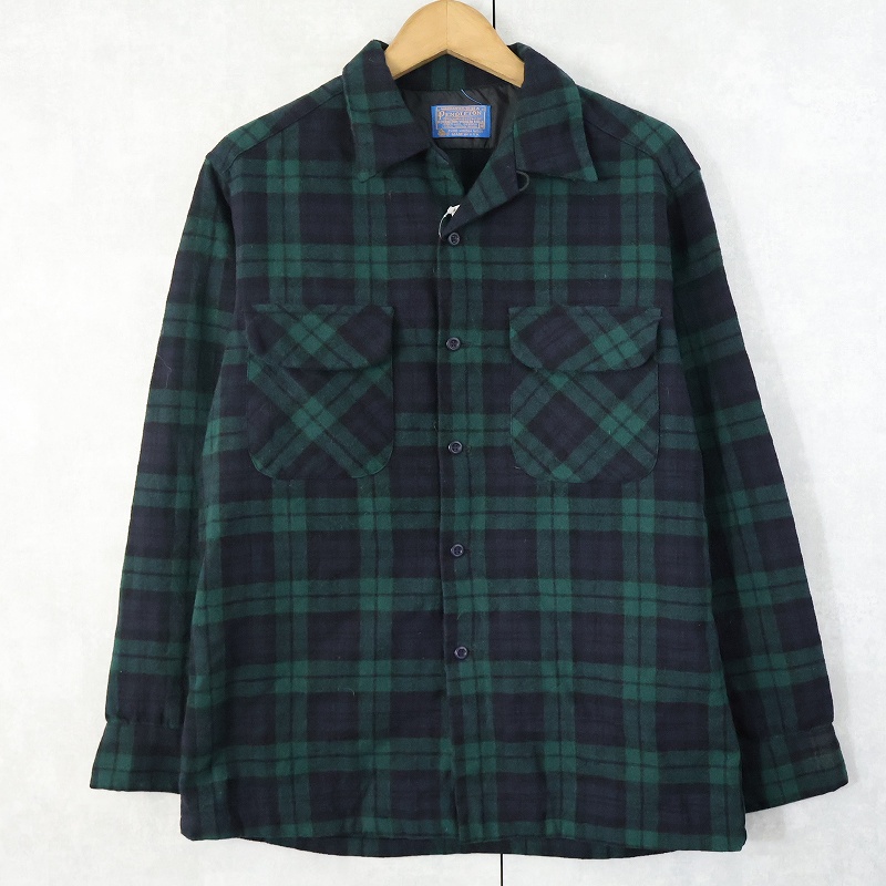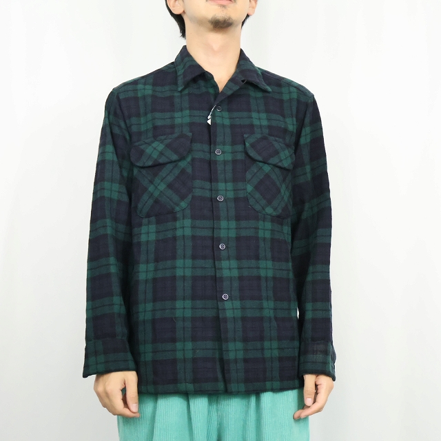 70's PENDLETON USA製 ブラックウォッチチェック柄 ウールオープンカラーシャツ M [158991]