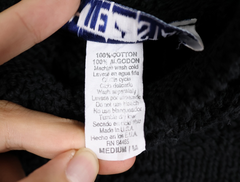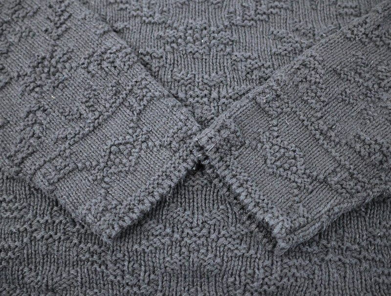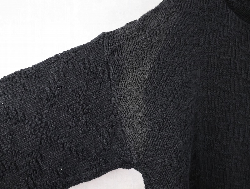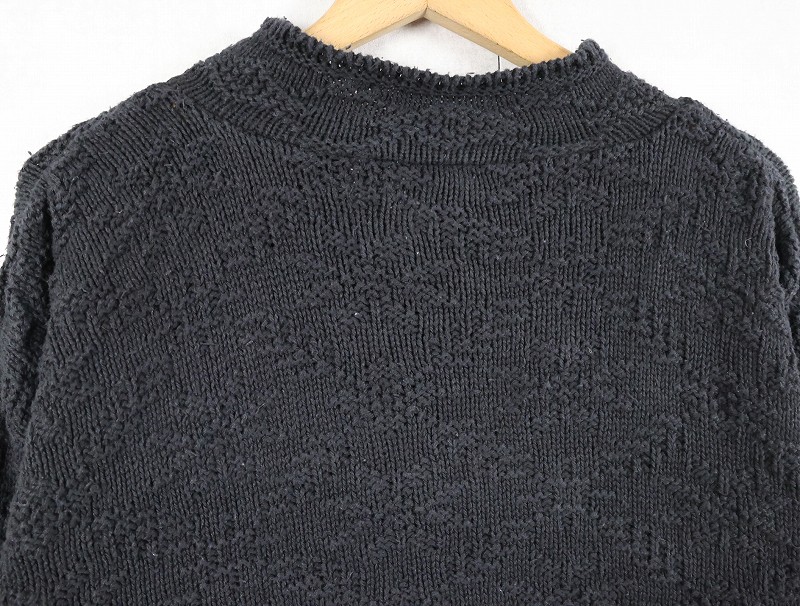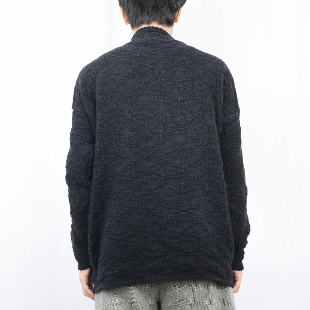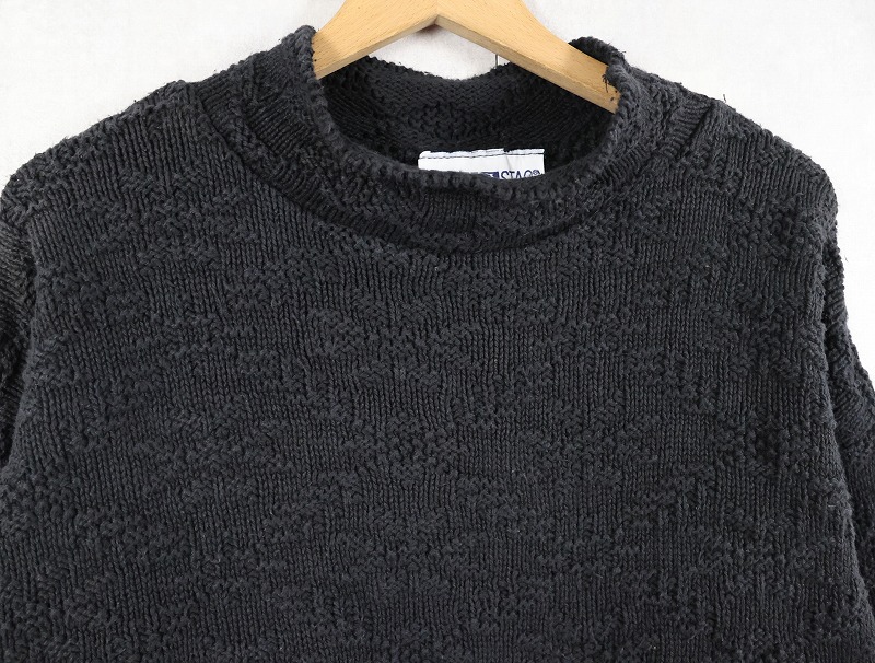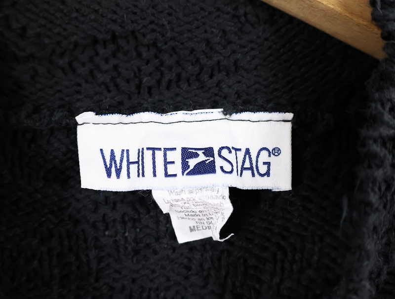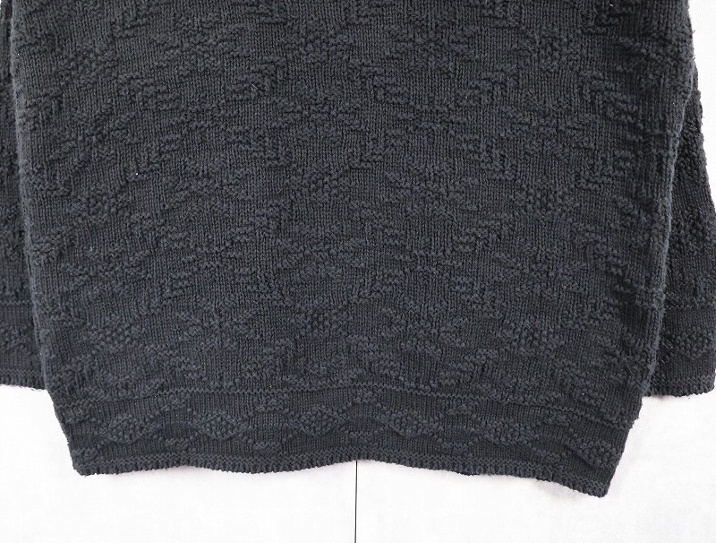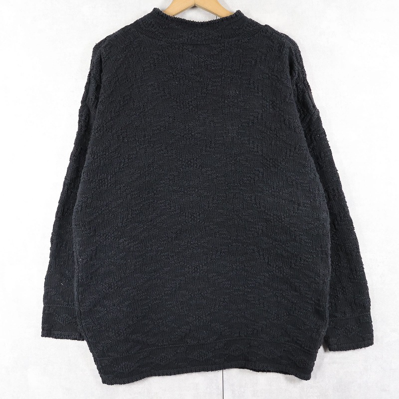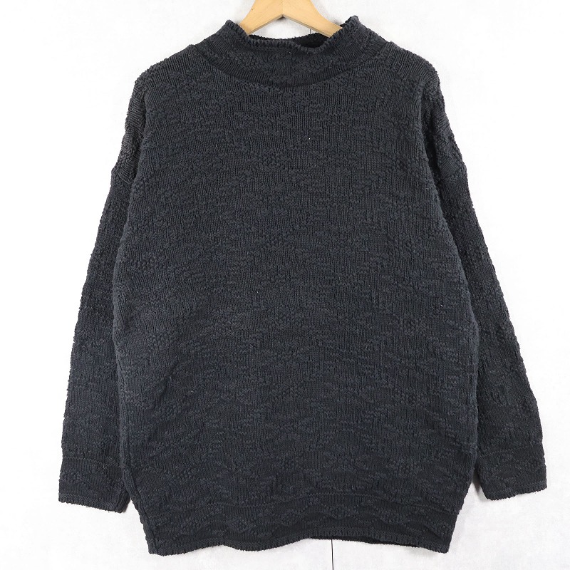 90's WHITE STAG USA製 柄編み モックネック コットンニットセーター BLACK M [159049]