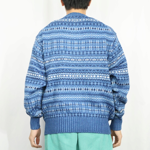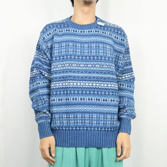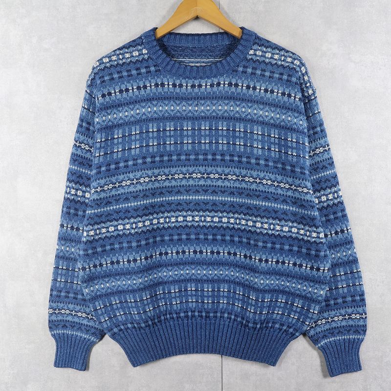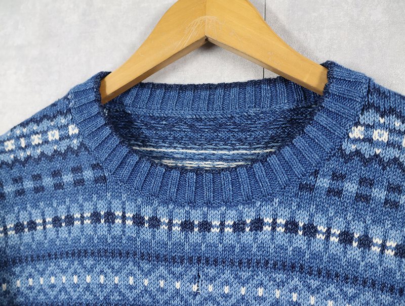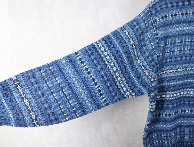 フェアアイル柄 インディゴコットンニットセーター [159058]