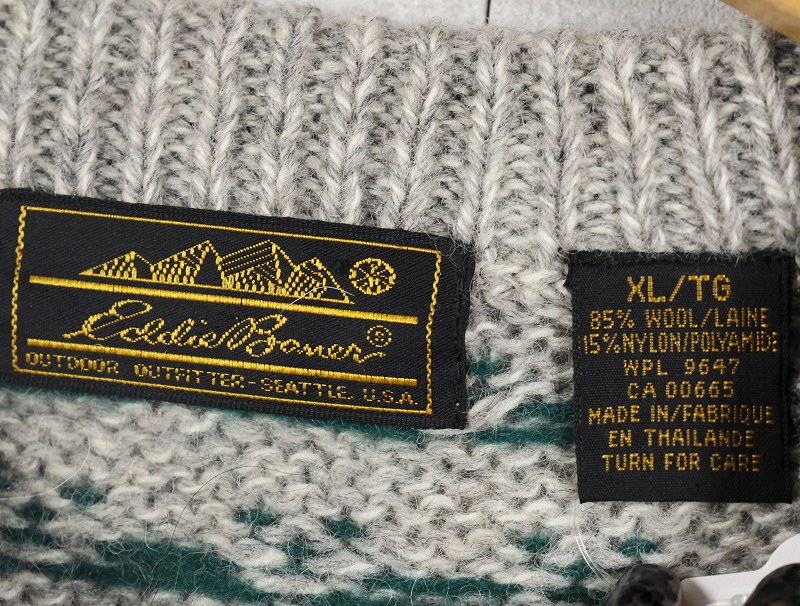 80〜90's Eddie Bauer バーズアイ柄 ウールニットセーター XL [159063]