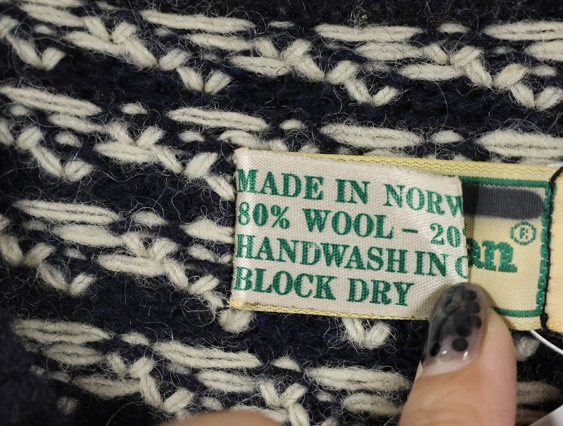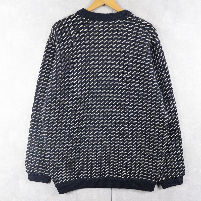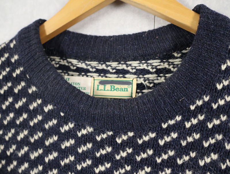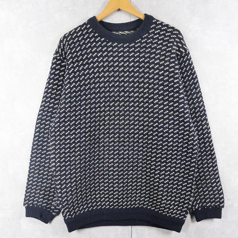 80's L.L.Bean NORWAY製 バーズアイ柄 ウールニットセーター NAVY L [159069]