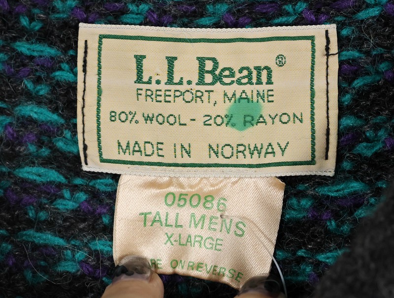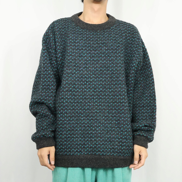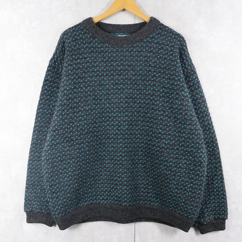 80's L.L.Bean NORWAY製 バーズアイ柄 ウールニットセーター XL [159074]