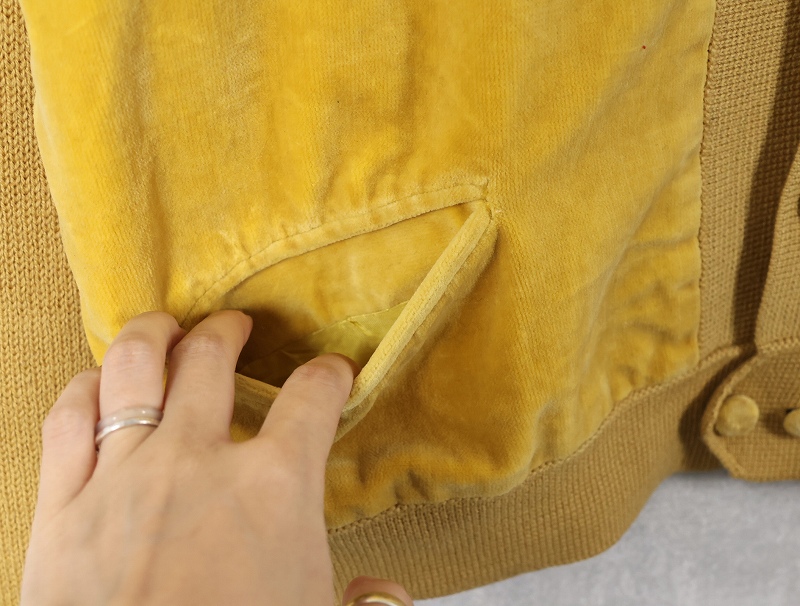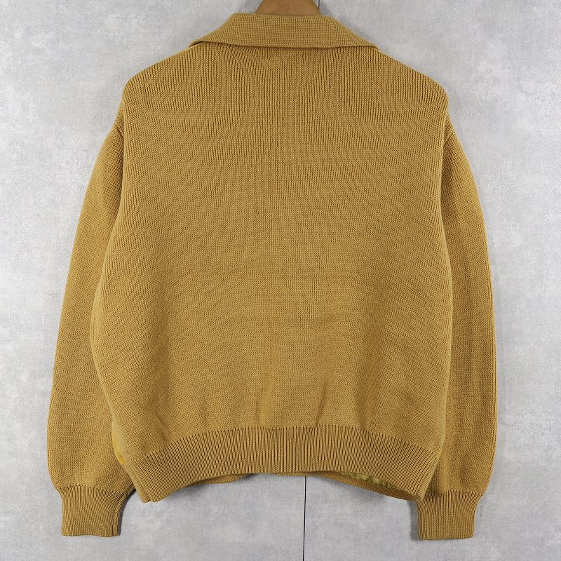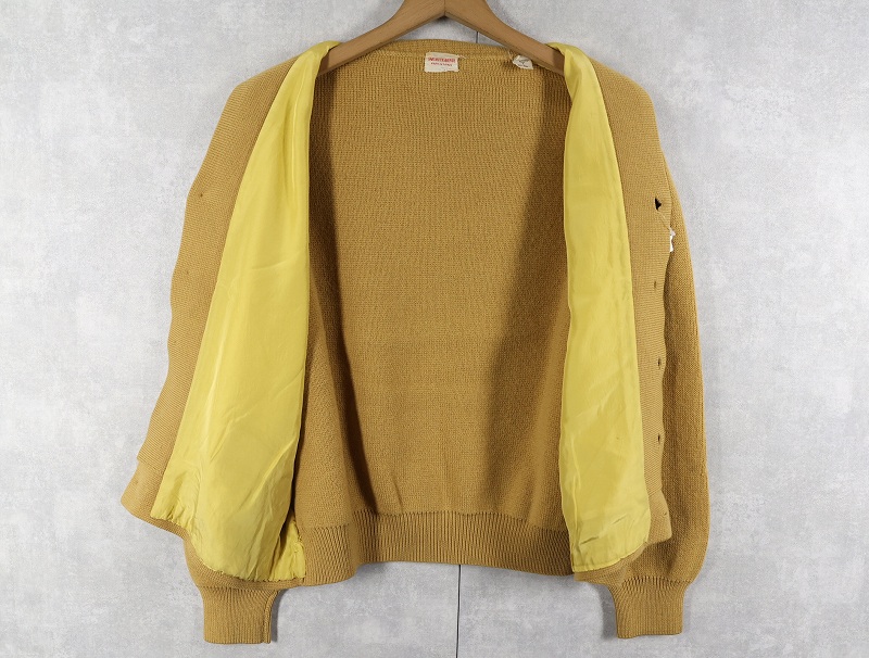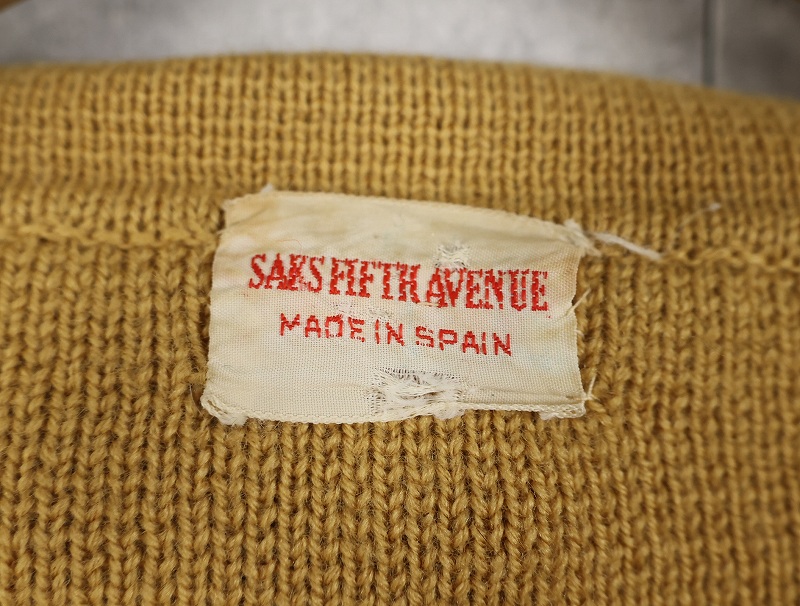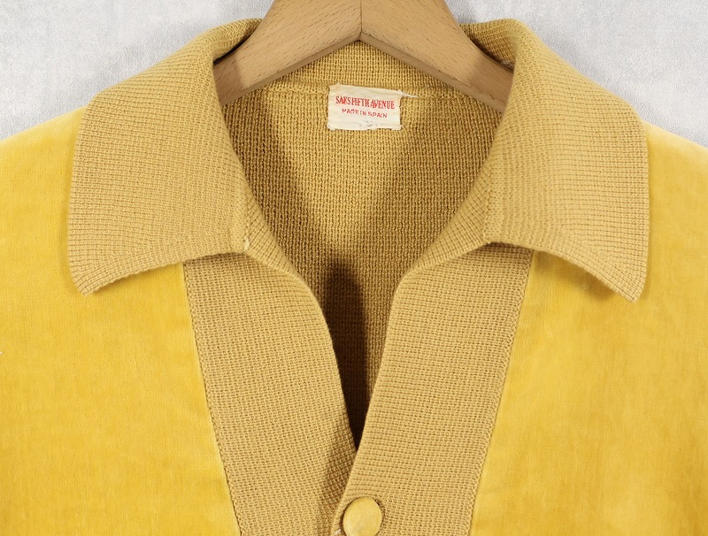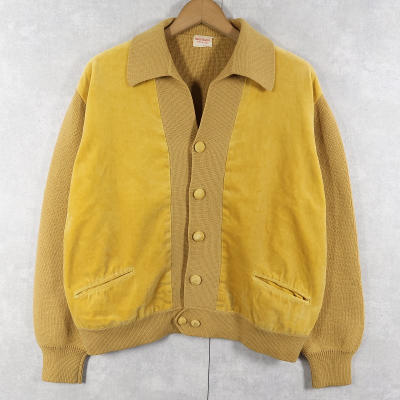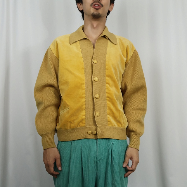 60〜70's SAKS FIFTH AVENUE SPAIN製 スエード切り替え ニットカーディガン L [159093]