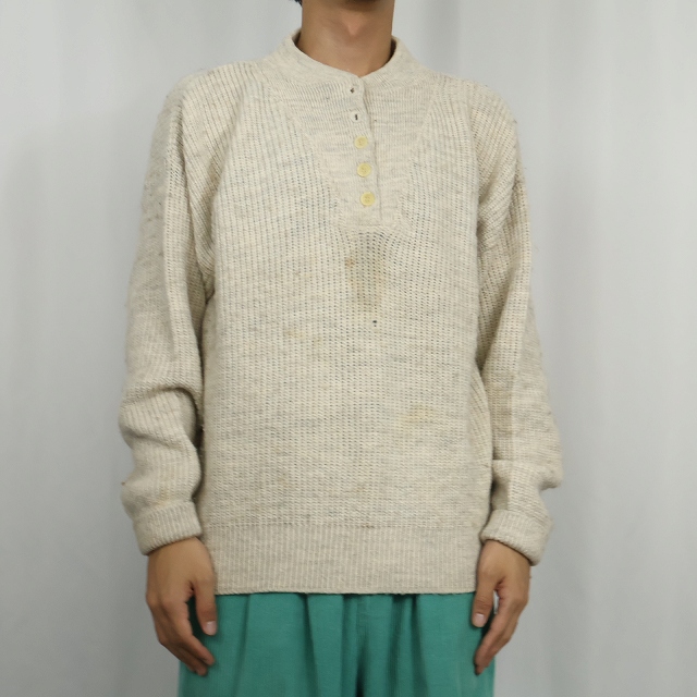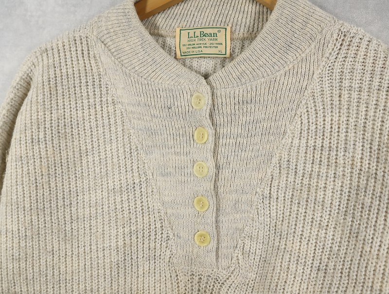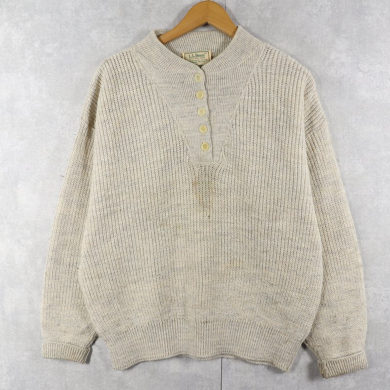 80〜90's L.L.Bean USA製 "HIGH TREK YARN" ヘンリーネック アクリルニットセーター XL [159096]