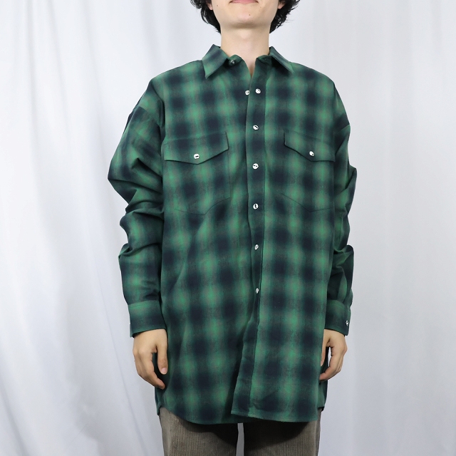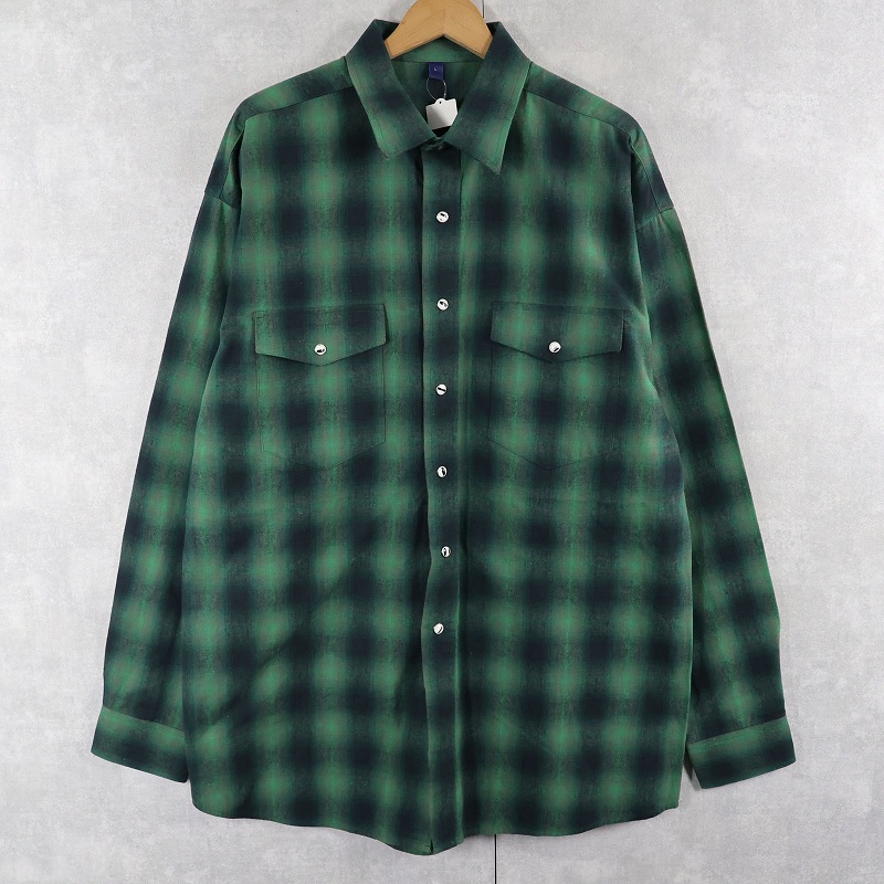 オンブレーチェック柄 ウエスタンシャツ L [159105]