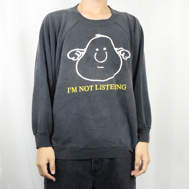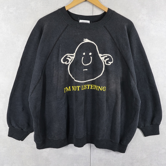 80's USA製 "I'M NOT LISTENING" イラストプリント グランスウェット BLACK 2XL [159151]
