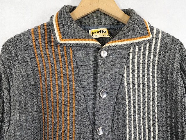 60's〜 Puritan ストライプ柄 ウールニットカーディガン SIZE40 [159176]