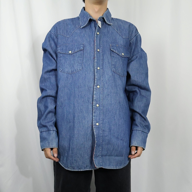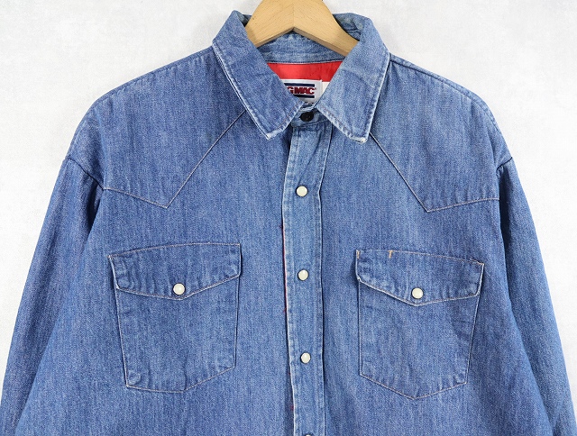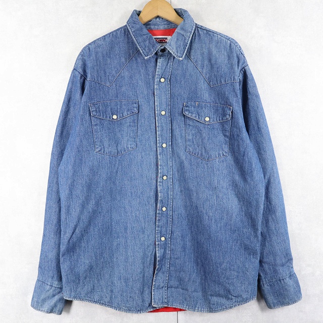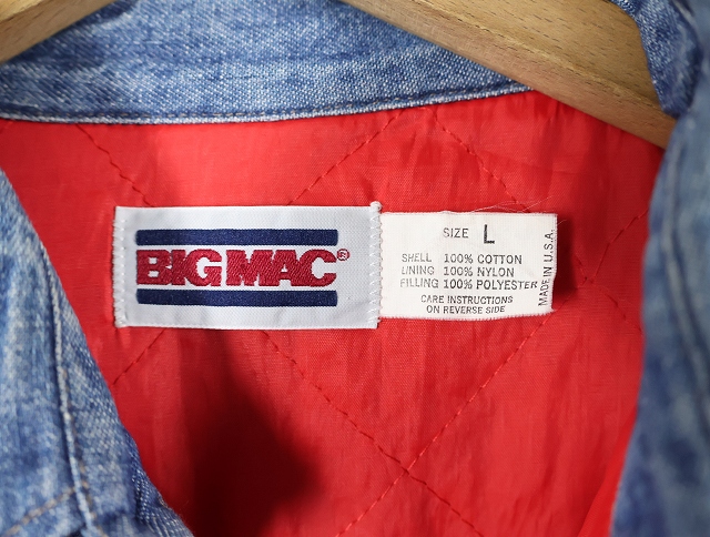 80's BIGMAC USA製 キルティングライナー ウエスタンデニムシャツ L [159177]